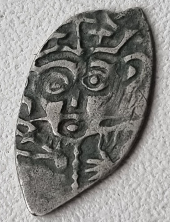 Монета представляет собой подделку, имитирующую древнерусскую серебряную чешую (проволочную монету). В посте автор прямо указывает на её неоригинальность. Такие копии часто изготавливаются для продажи неопытным коллекционерам или в сувенирных целях.