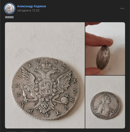В посте сообщества упоминается продавец, известный под ником Василий Васютин, который ассоциируется с продажей поддельных монет («фуфла»). Однако в самом посте отсутствуют фотографии или конкретное описание монеты, что делает невозможным её атрибуцию. Без визуального материала или деталей нельзя определить ни подлинность, ни параметры предполагаемого лота.