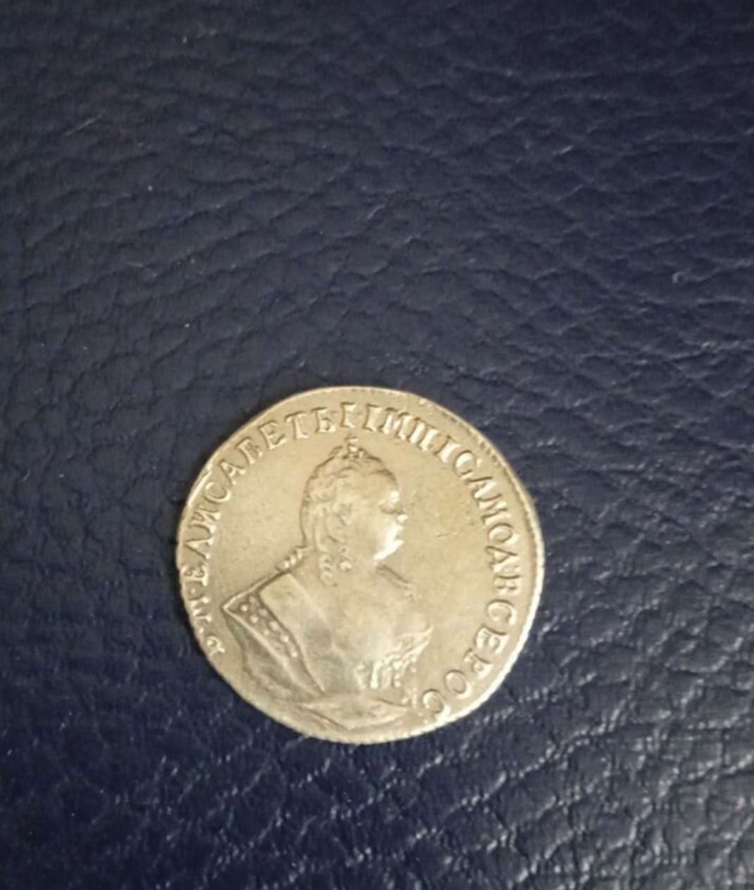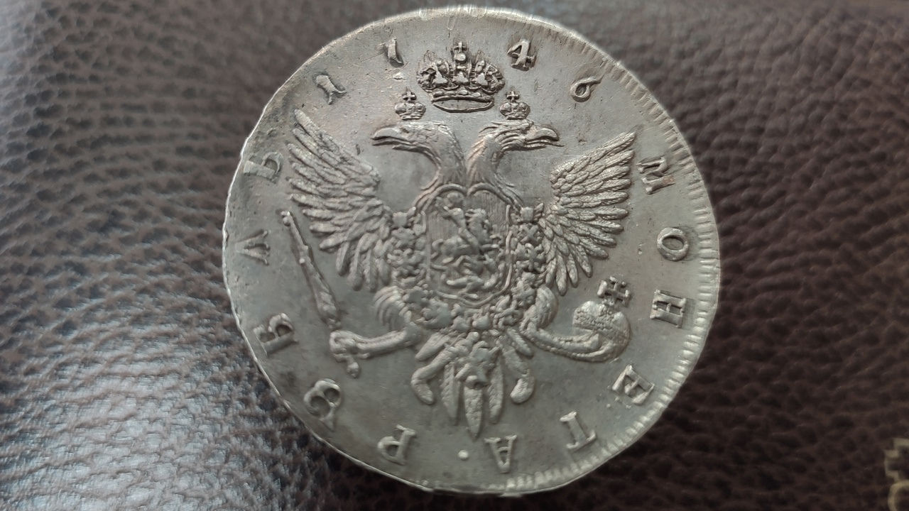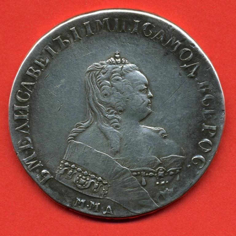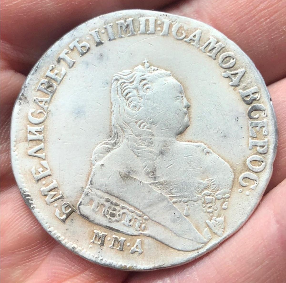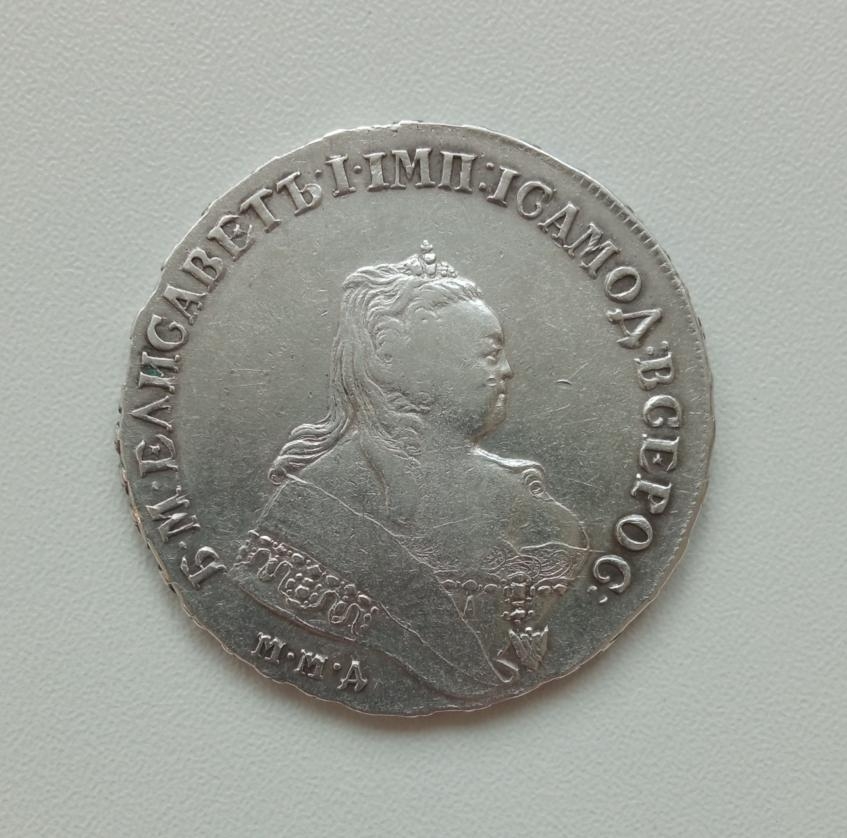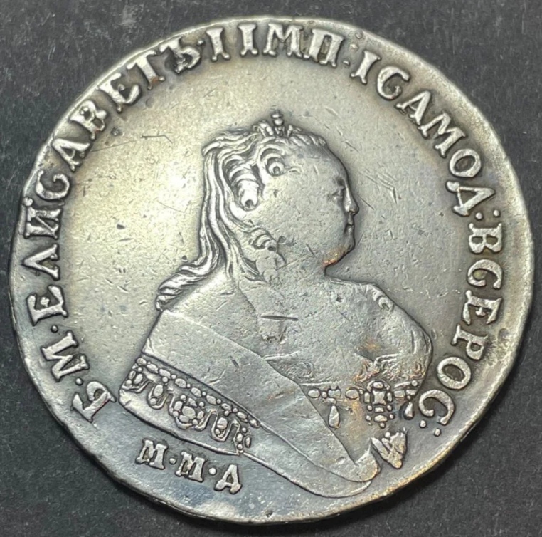 Серебряный рубль 1743 года, отчеканенный в правление императрицы Елизаветы Петровны. Монета имеет характерные для подлинных экземпляров того периода особенности чеканки и патину. Большинство экспертов в обсуждении признали её оригинальной, несмотря на вопросы о рельефе поверхности.