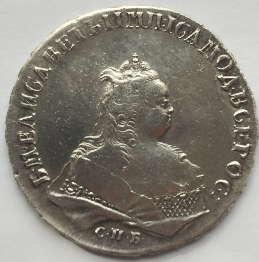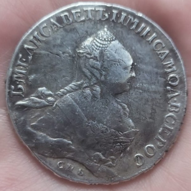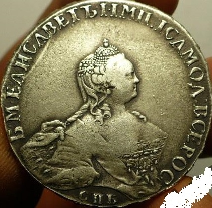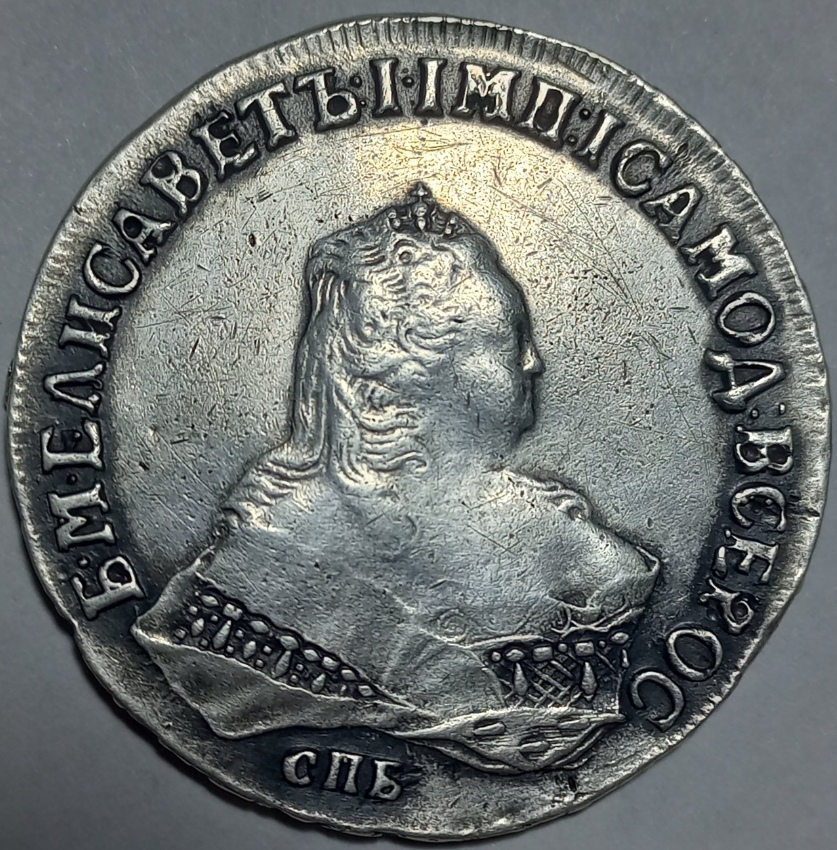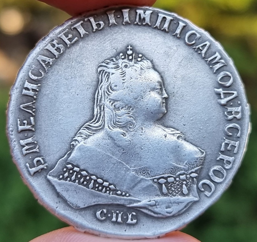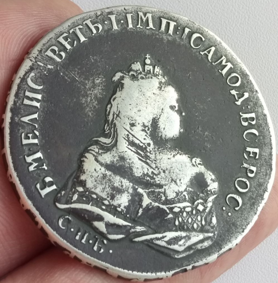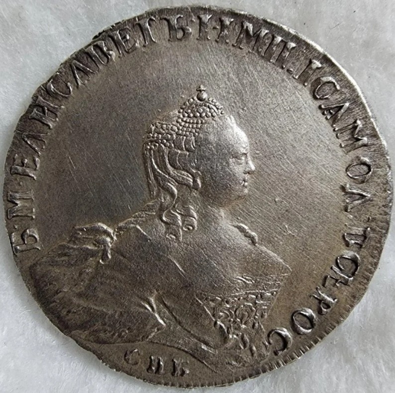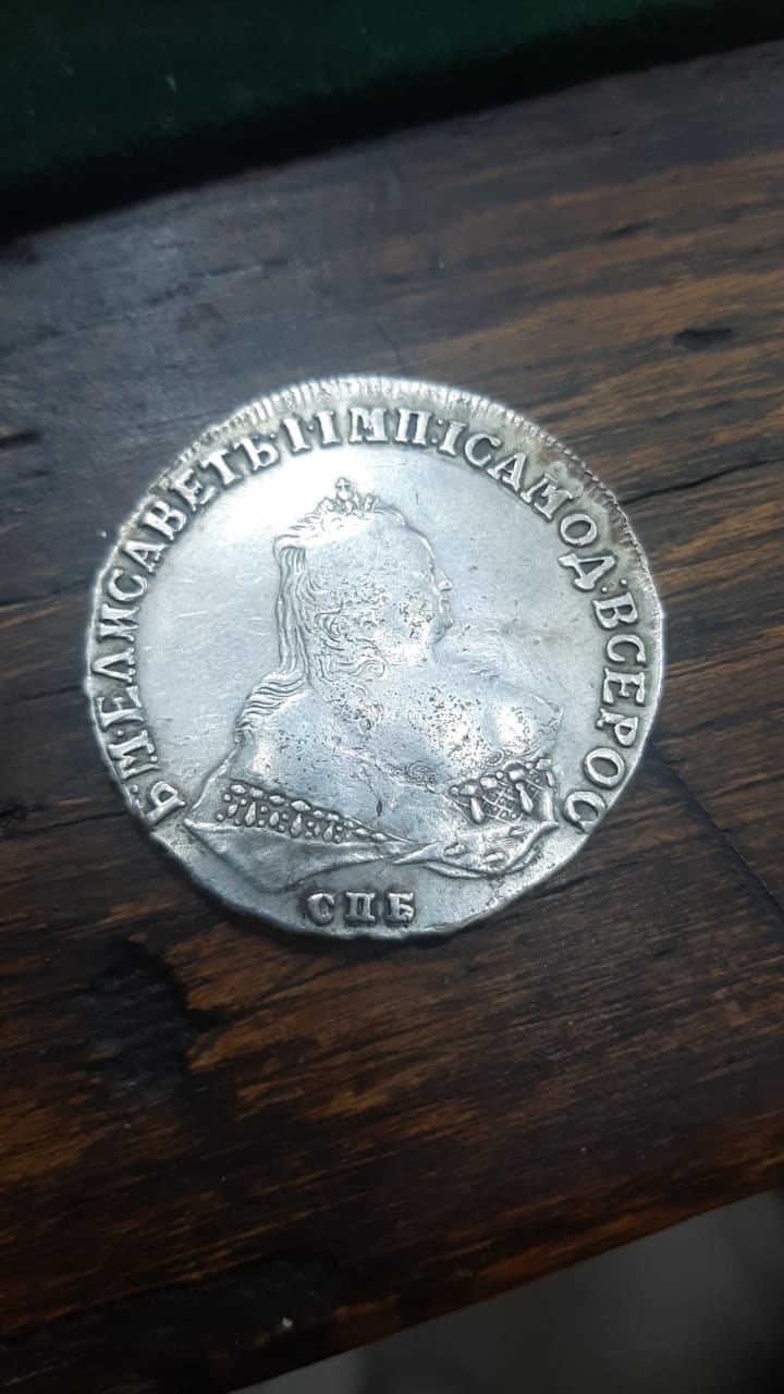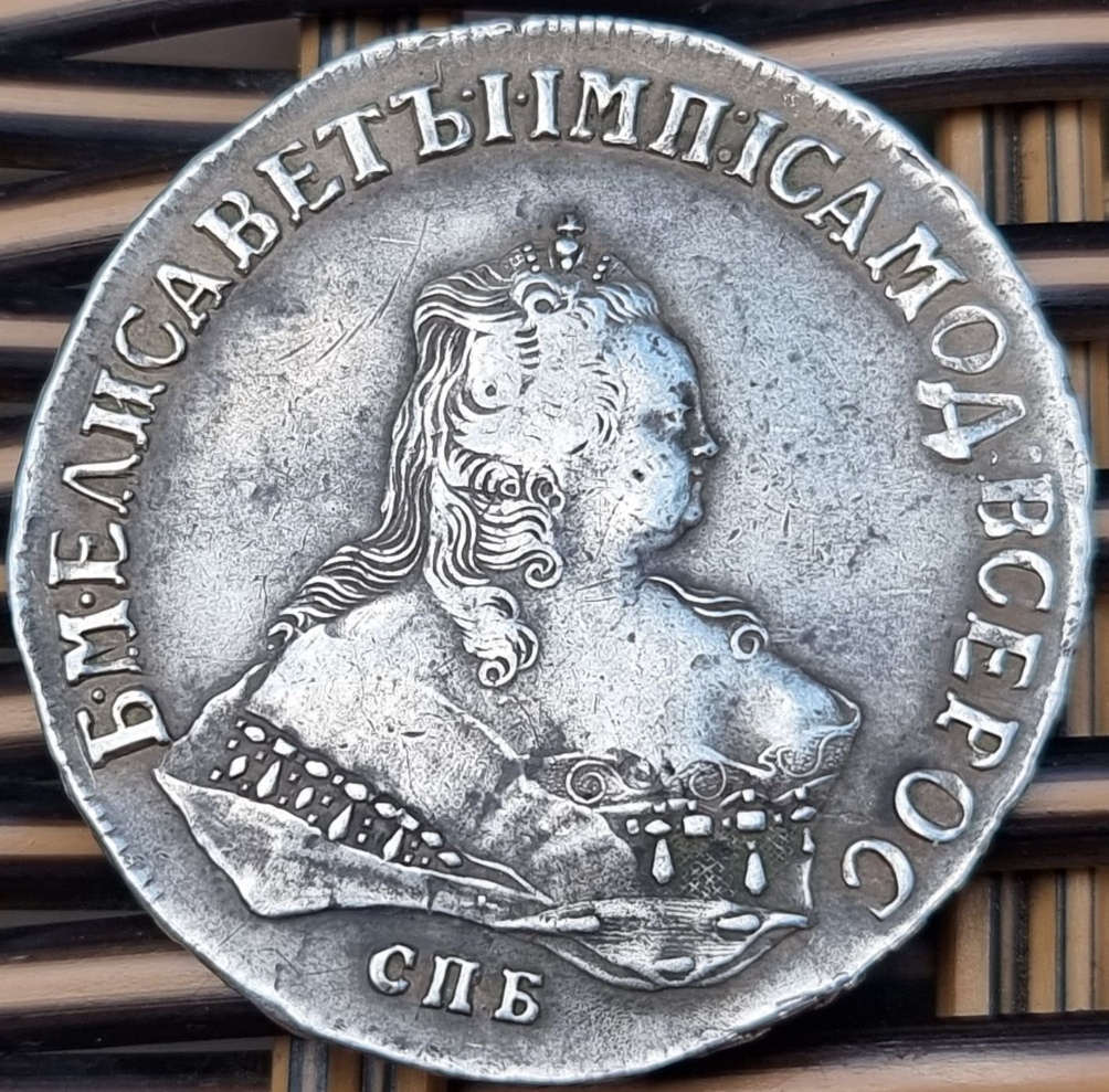 Монета номиналом 1 рубль, отчеканенная в 1741 году в Санкт-Петербурге (СПБ) в правление императрицы Елизаветы Петровны. Оригинальные рубли этого года являются редкими и ценными коллекционными экземплярами. Представленный в посте экземпляр является подделкой, о чём прямо указал автор публикации.