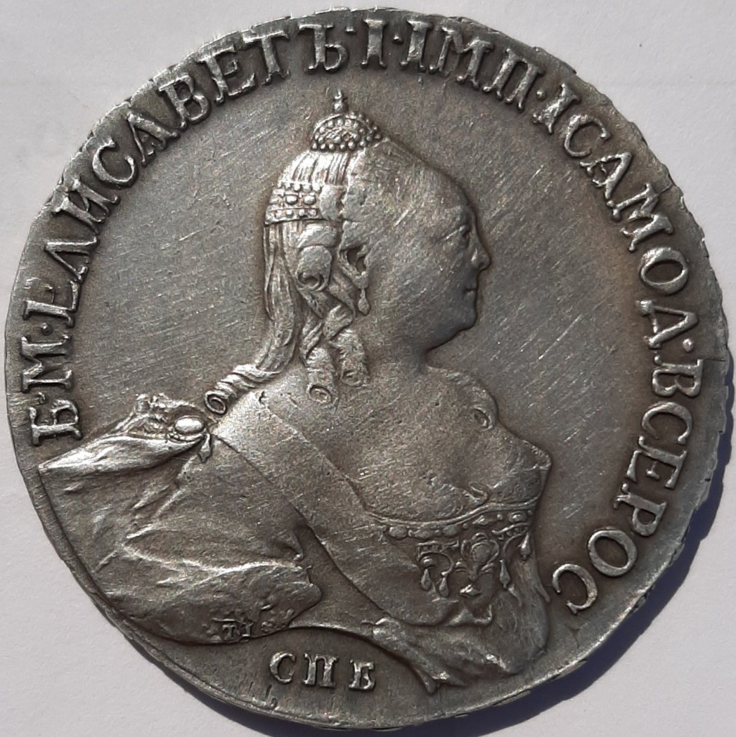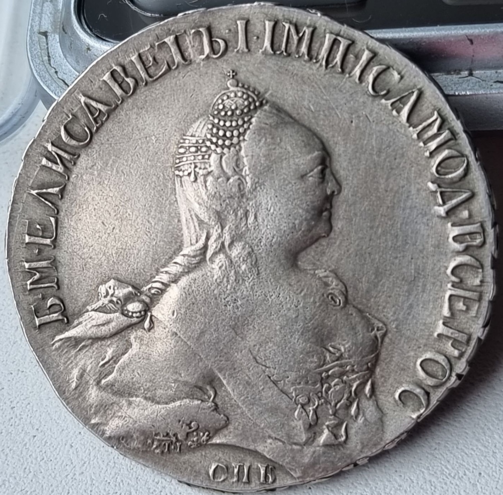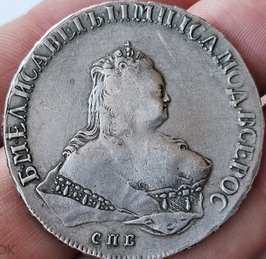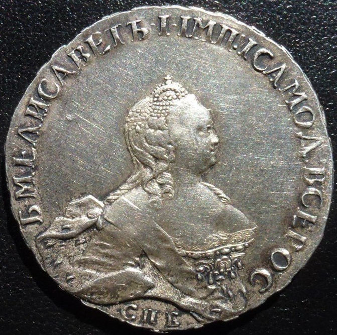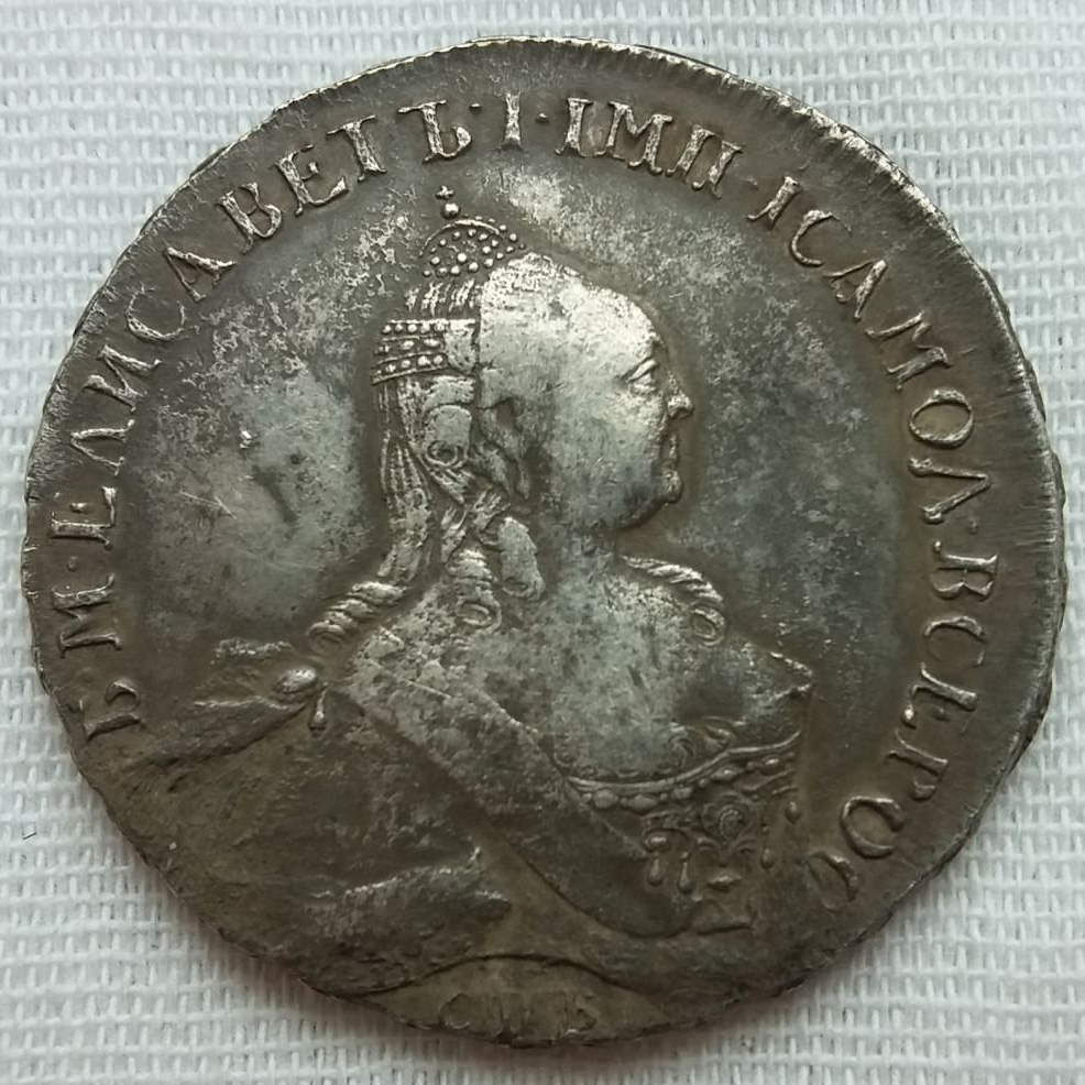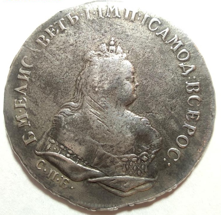 Монета номиналом 1 рубль, отчеканенная в 1741 году в Санкт-Петербурге (СПБ) в правление императрицы Елизаветы Петровны. Оригинальные рубли этого года являются редкими и ценными коллекционными экземплярами. Представленный в посте экземпляр является подделкой, о чём прямо указал автор публикации.