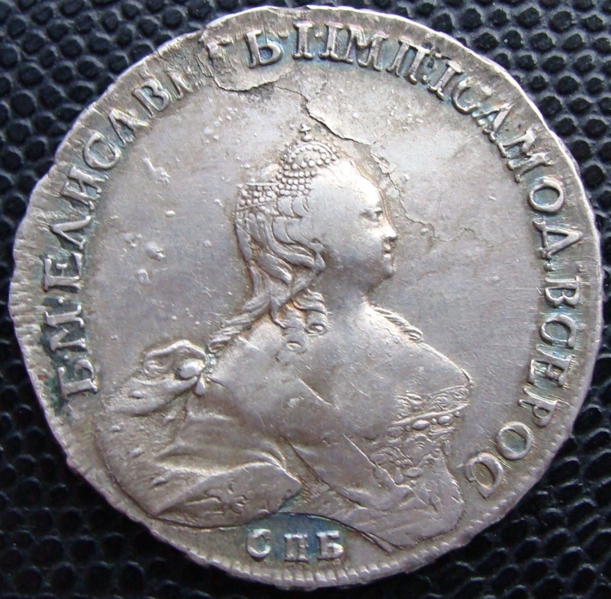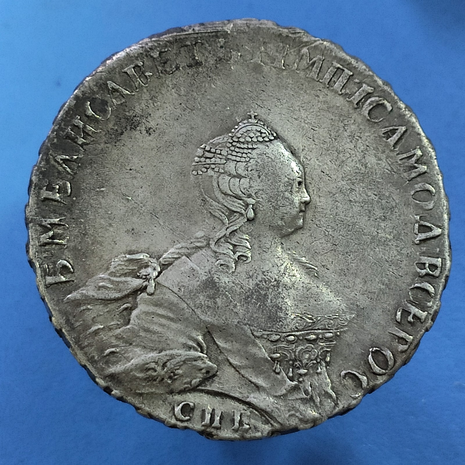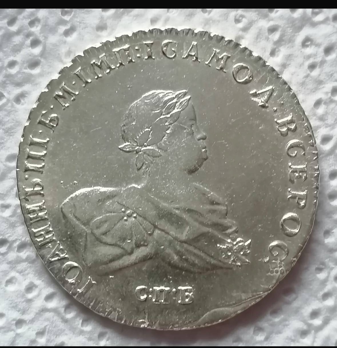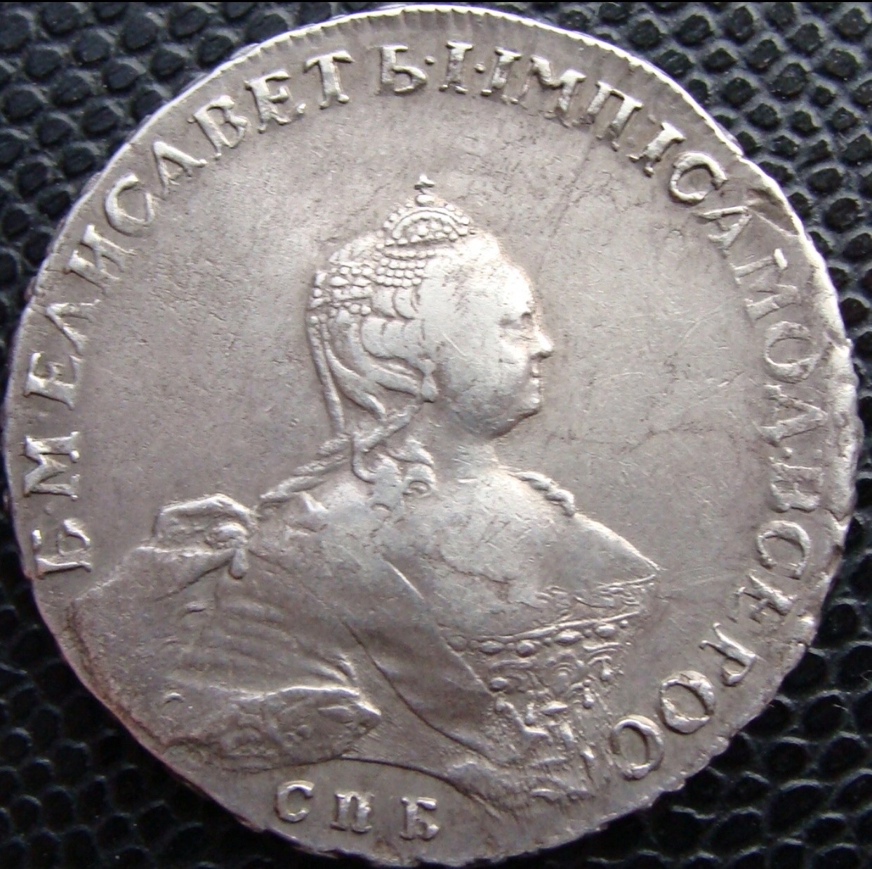 Монета номиналом 1 рубль, отчеканенная в 1741 году в Санкт-Петербурге (СПБ) в правление императрицы Елизаветы Петровны. Оригинальные рубли этого года являются редкими и ценными коллекционными экземплярами. Представленный в посте экземпляр является подделкой, о чём прямо указал автор публикации.