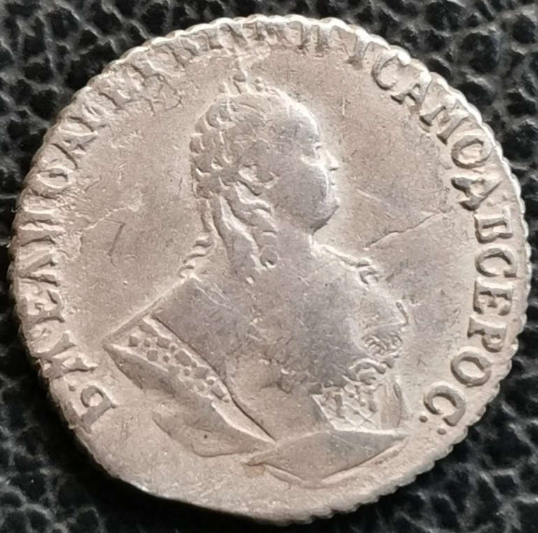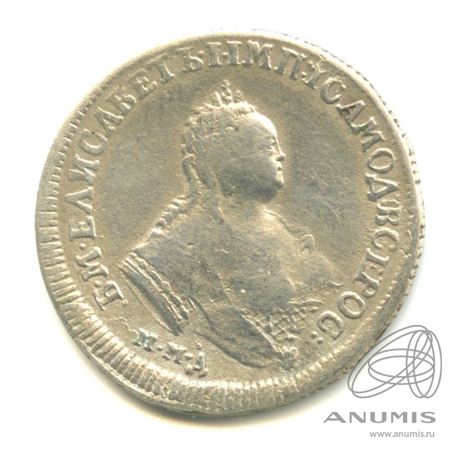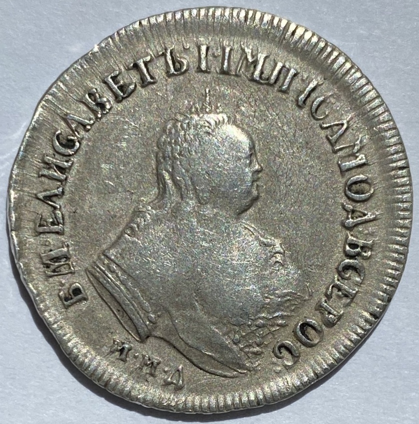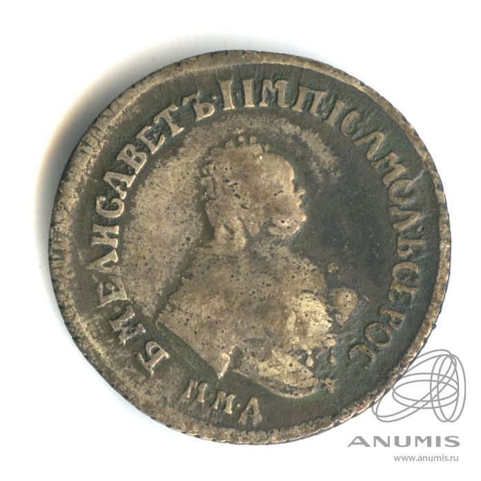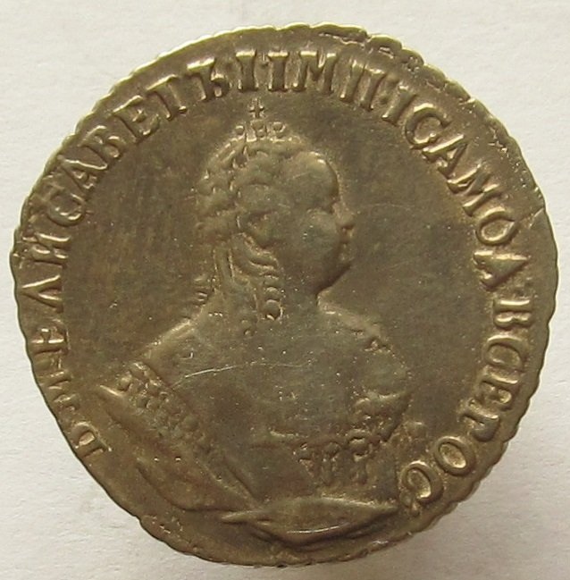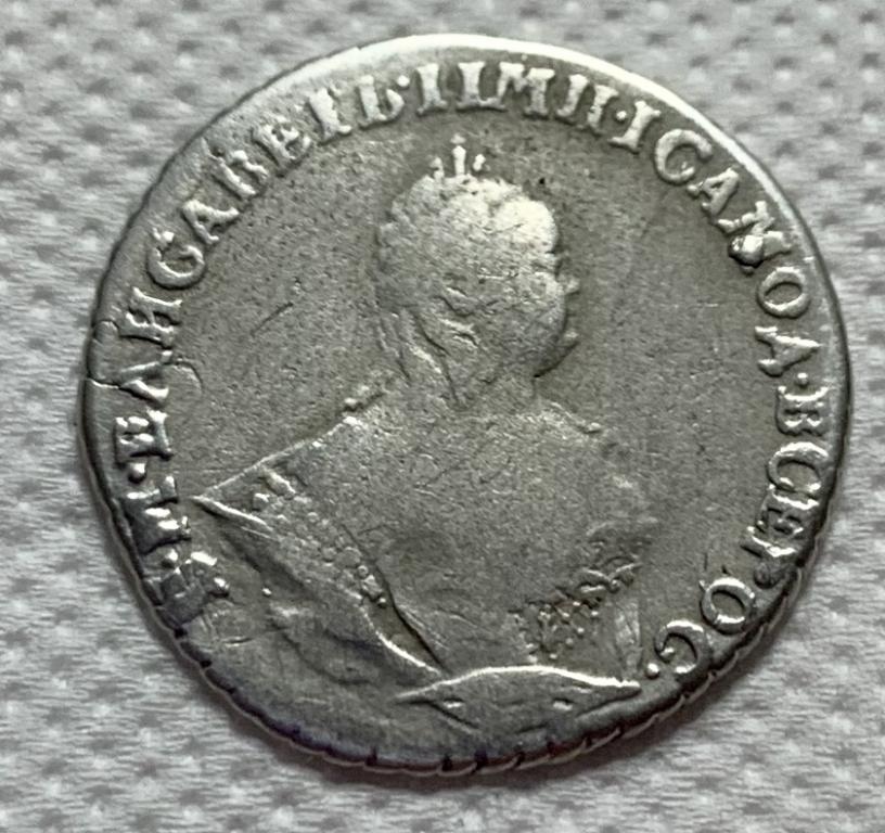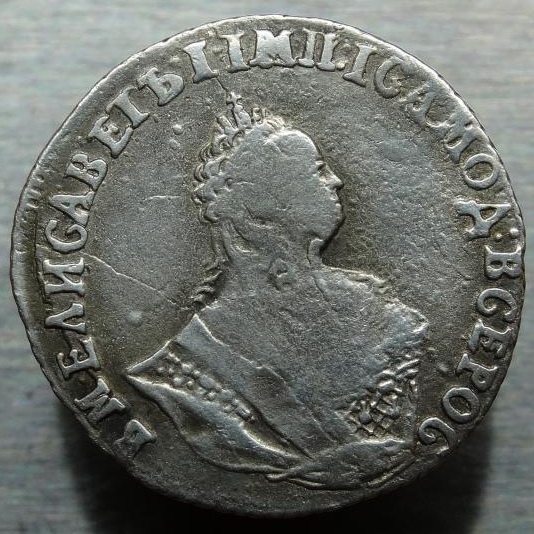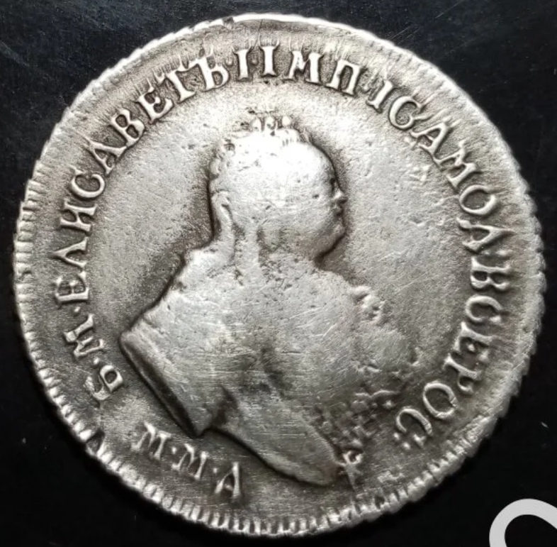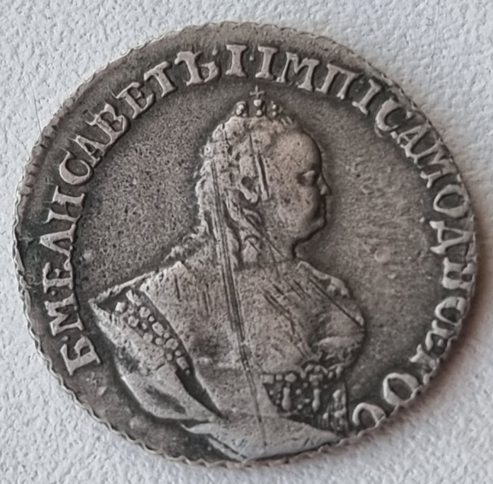 Монета представляет собой гривенник (10 копеек) времён правления императрицы Елизаветы Петровны, отчеканенный в 1744 году. Оригинальные экземпляры этого периода являются редкими и ценными. Представленный в посте экземпляр является копией, что прямо указано автором и подтверждено комментаторами.
