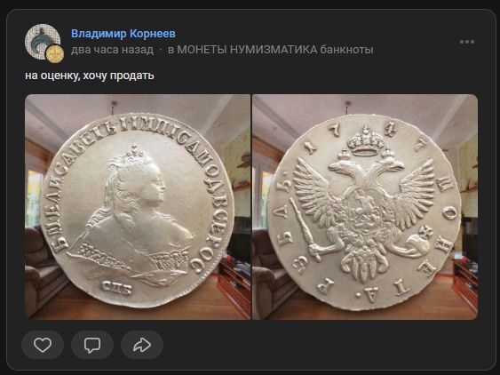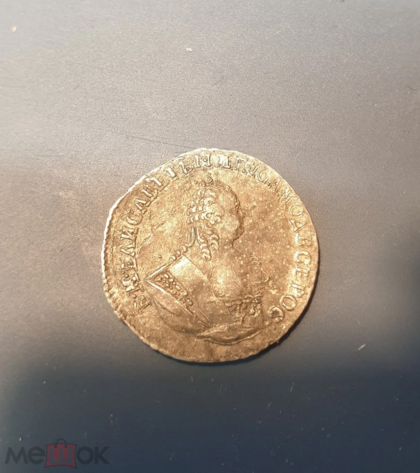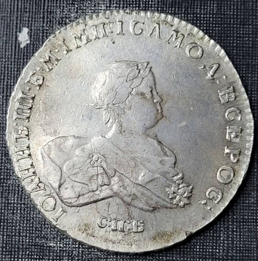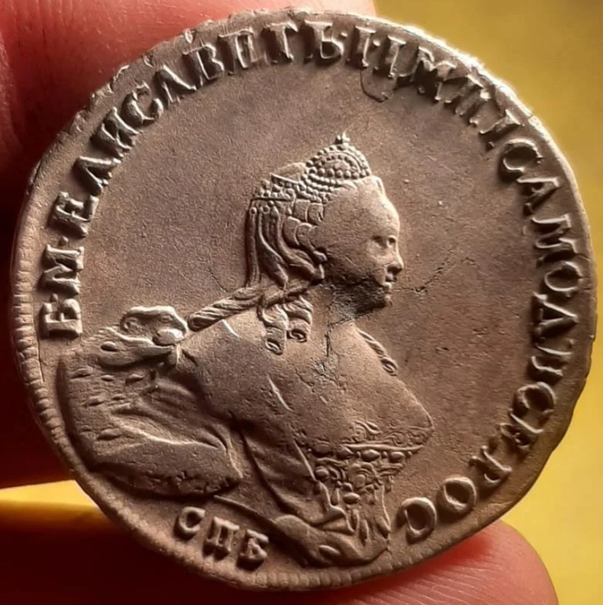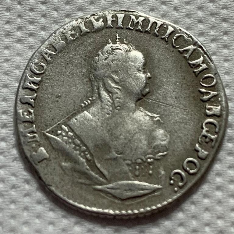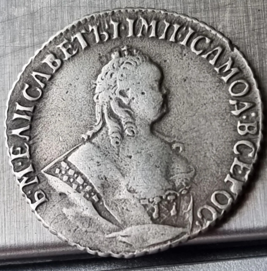 Монета представляет собой подделку серебряного рубля 1759 года, отчеканенного в период правления императрицы Елизаветы Петровны. Оригинальные рубли этого года имеют высокую коллекционную ценность и сложный портретный штемпель, что делает их частой мишенью для фальсификаторов. В самом посте автор прямо указывает, что монета является подделкой.