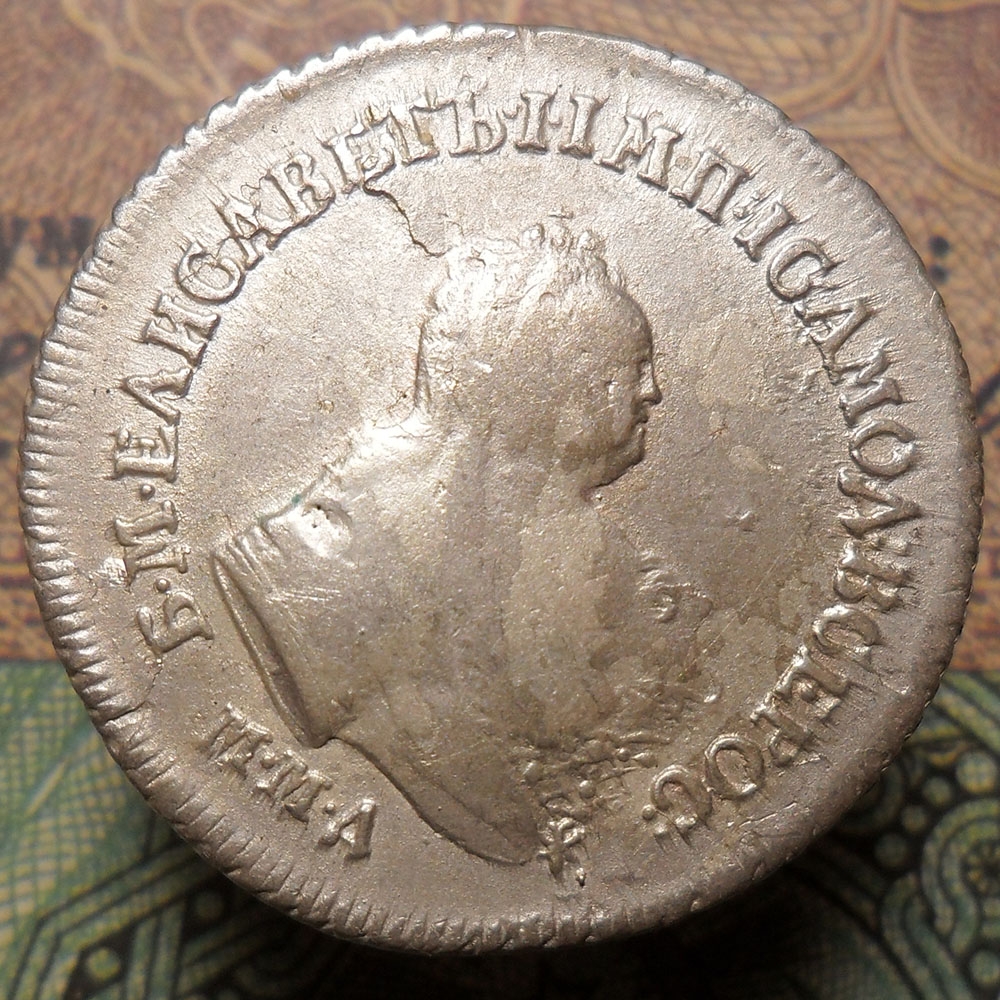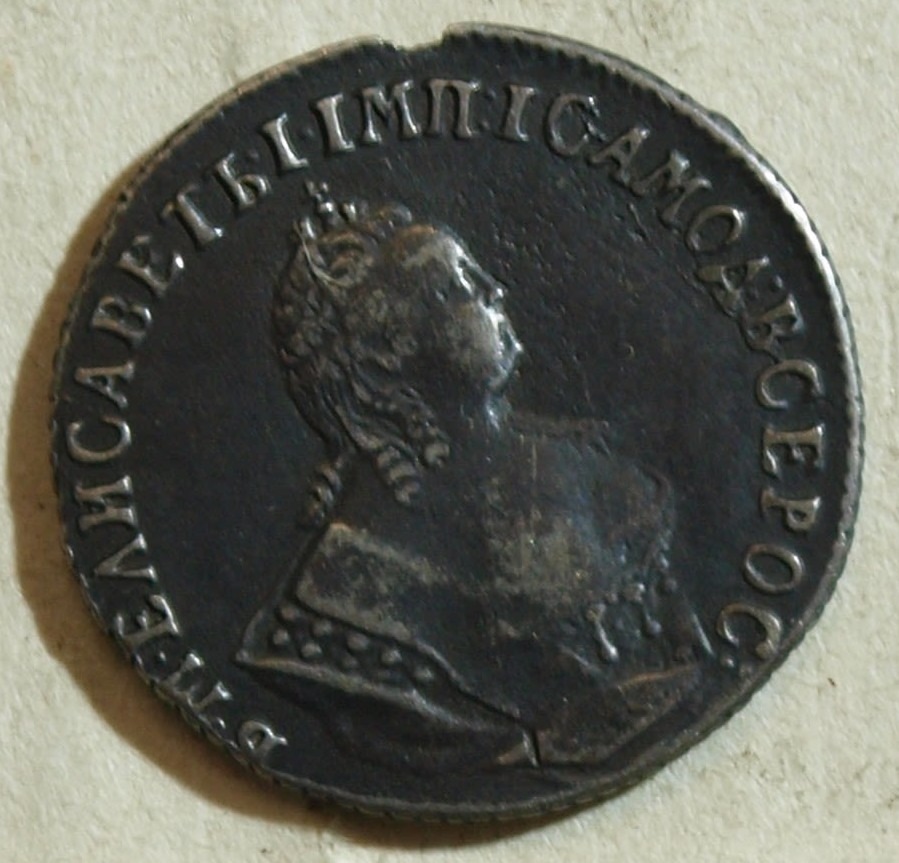 Гривенник 1744 года — поддельная монета Елизаветы Петровны