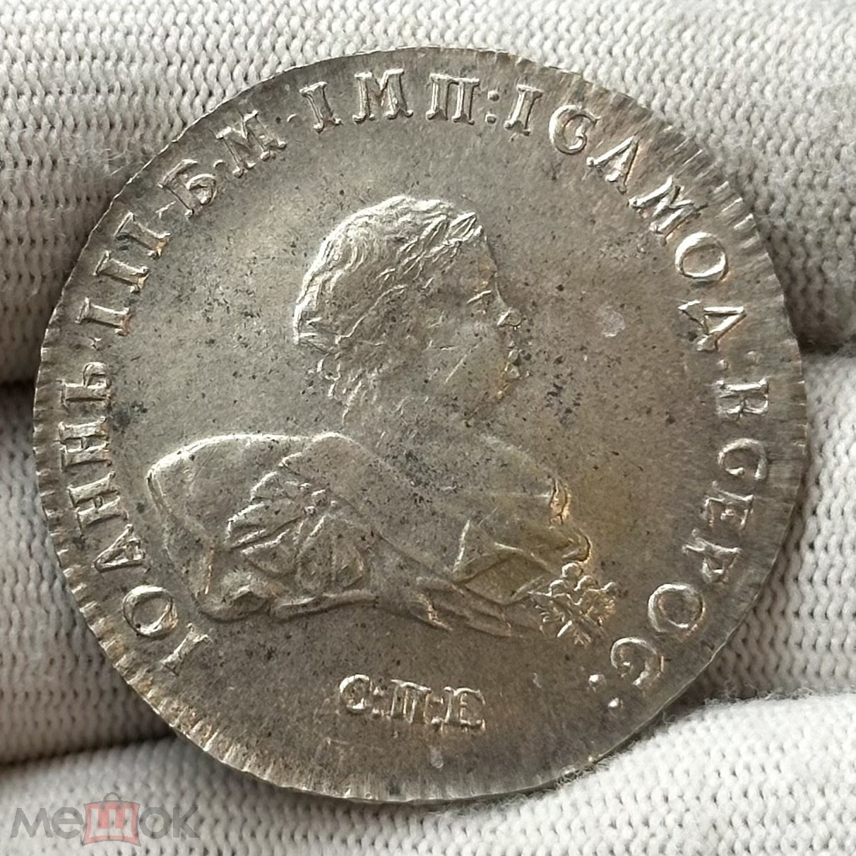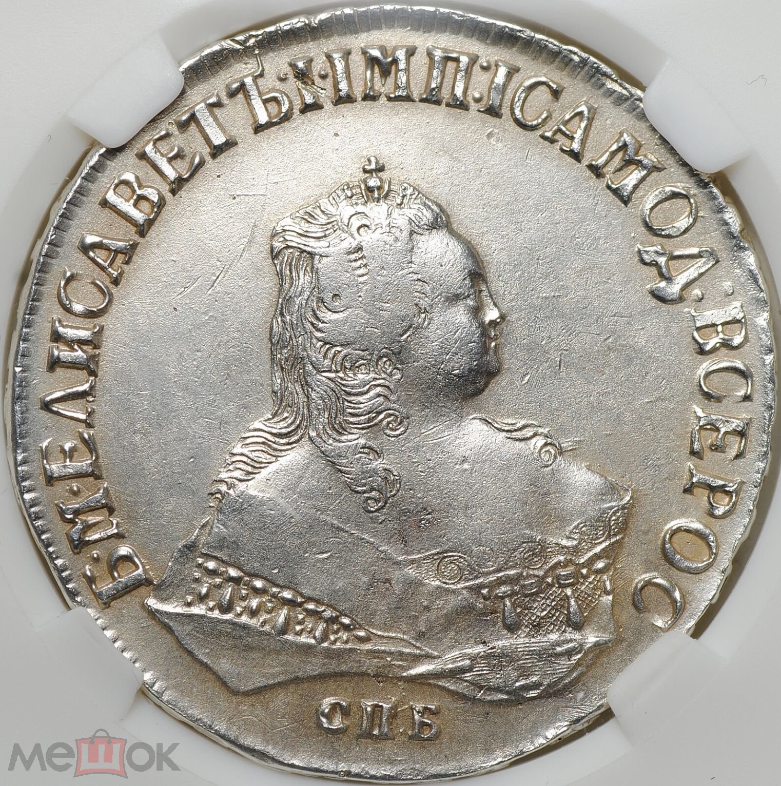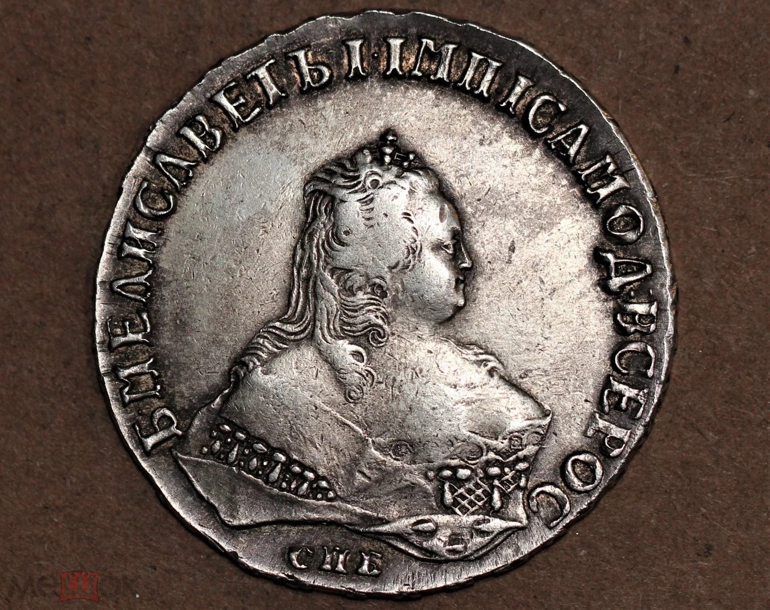 Монета представлена как серебряный рубль 1742 года Санкт-Петербургского монетного двора (СПБ) времён правления императрицы Елизаветы Петровны. Однако в самом посте автор прямо указывает, что это подделка. Подлинные рубли этого года чеканились ограниченным тиражом и являются редкими, что делает их частой мишенью для фальсификаторов.