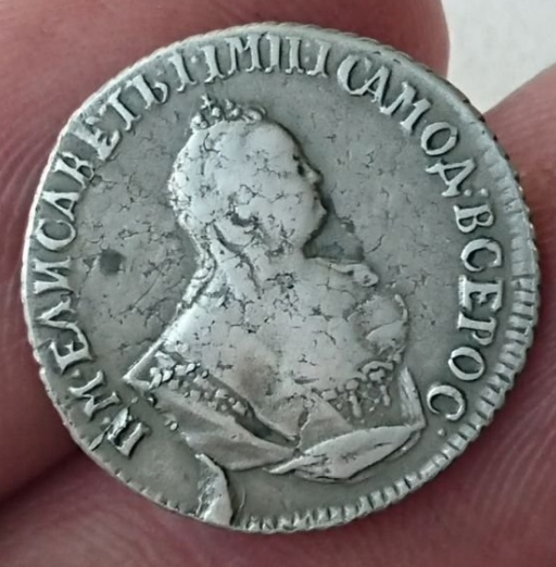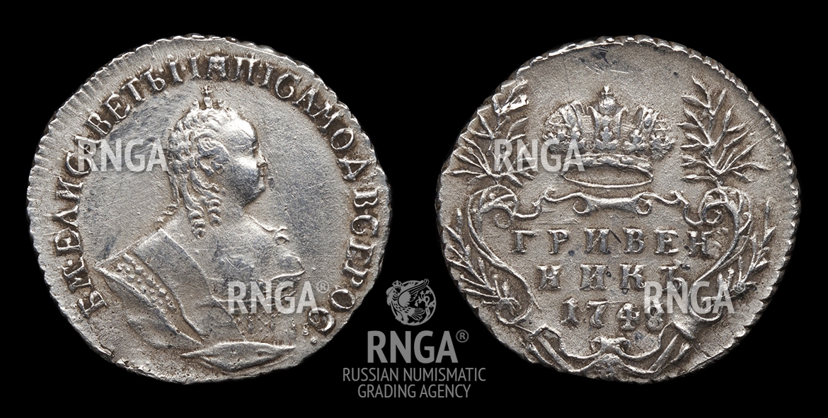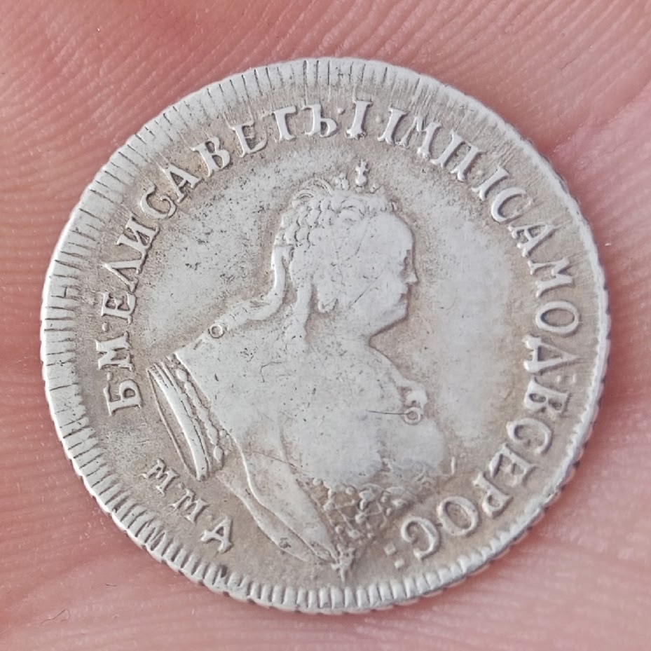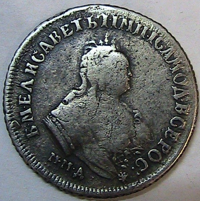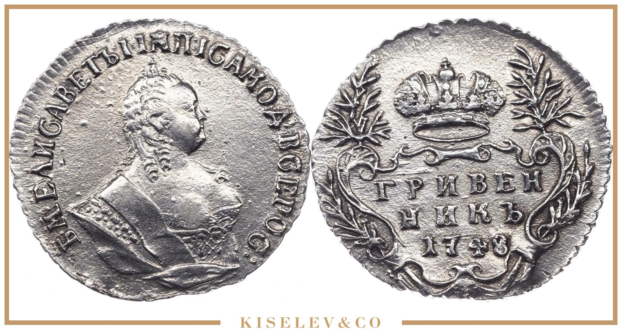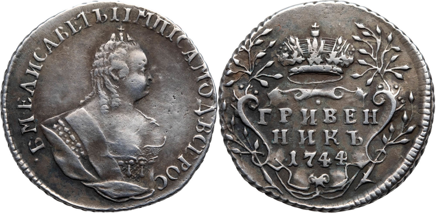 Гривенник 1744 года Елизаветы Петровны — подлинная монета