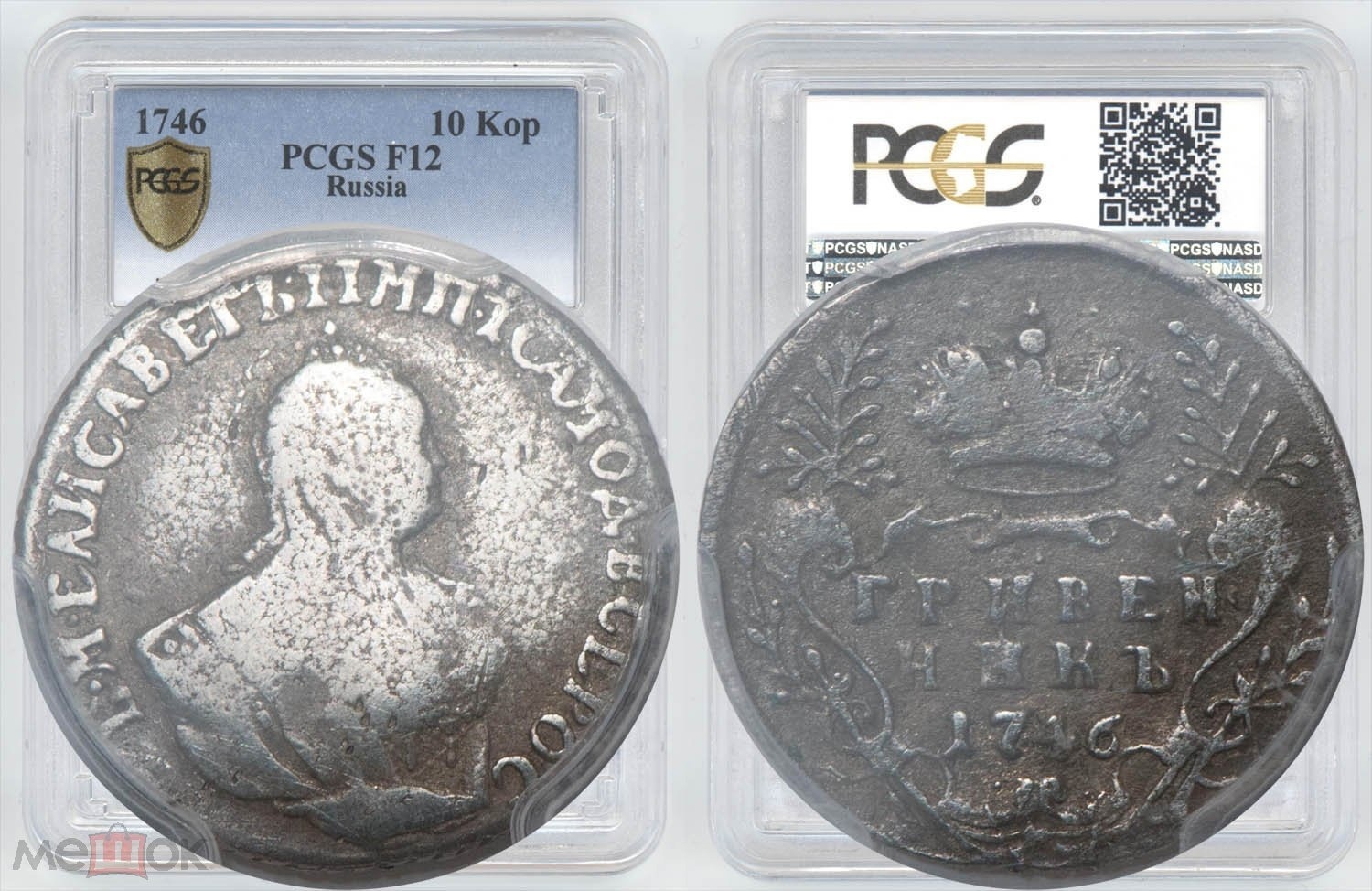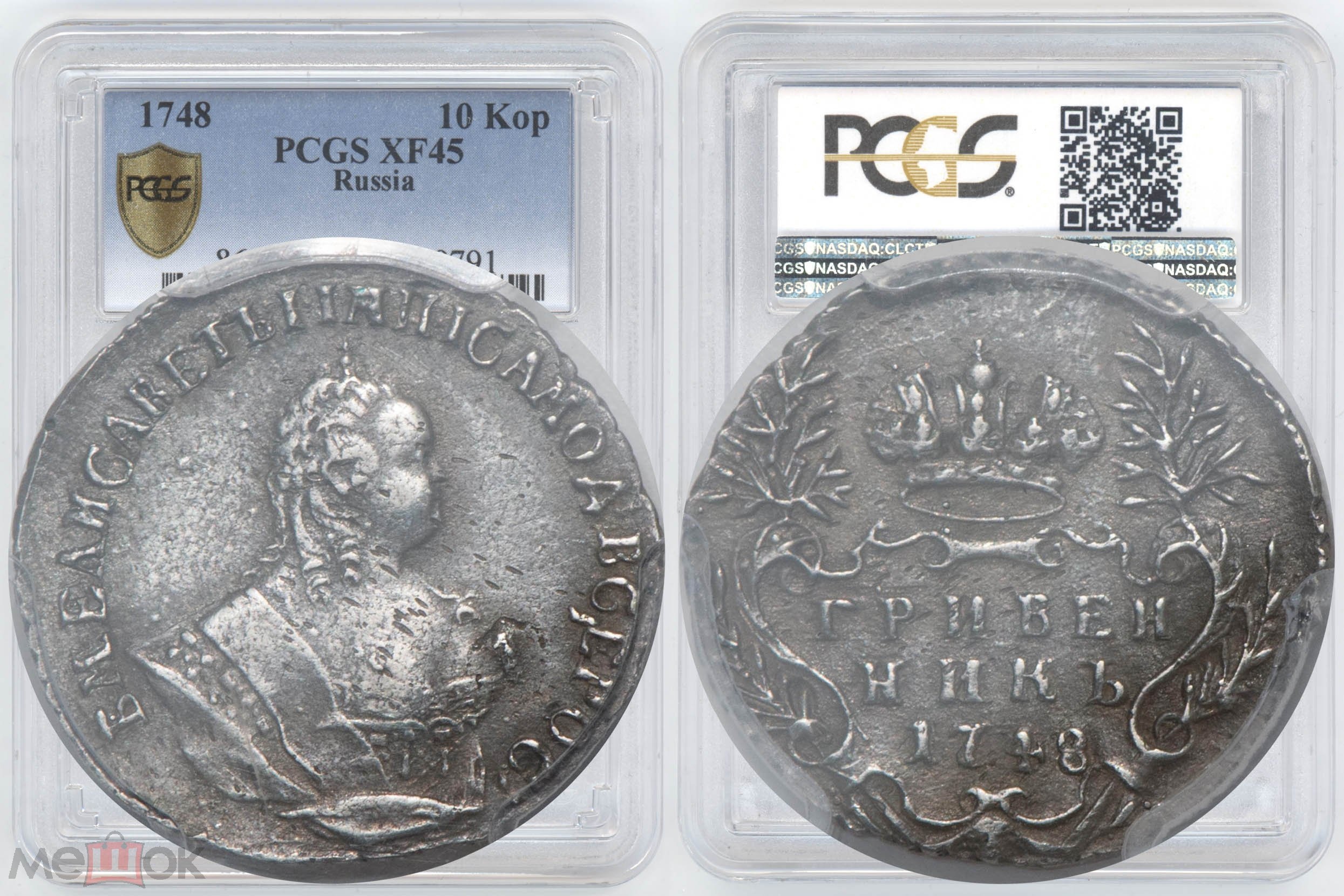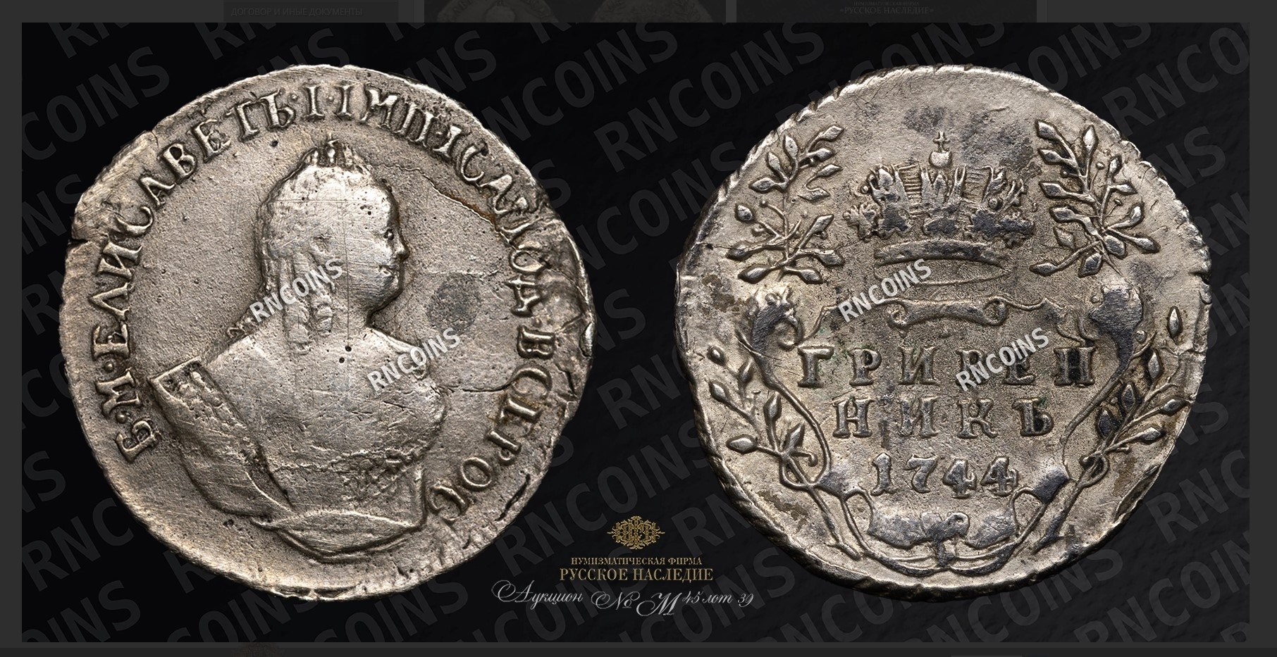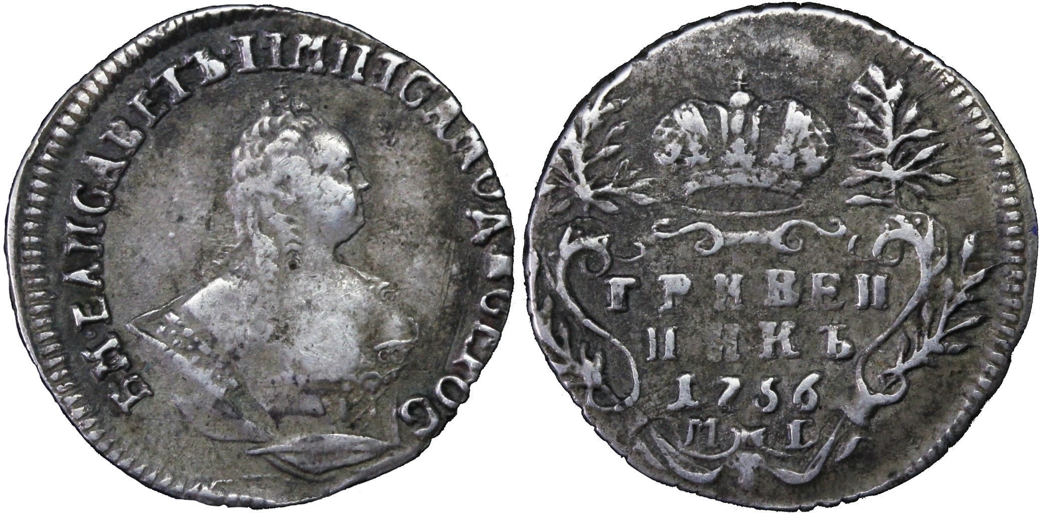 Гривенник 1744 года Елизаветы Петровны — подлинная монета