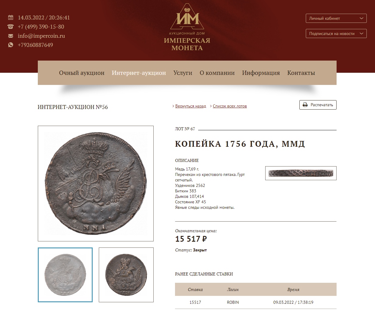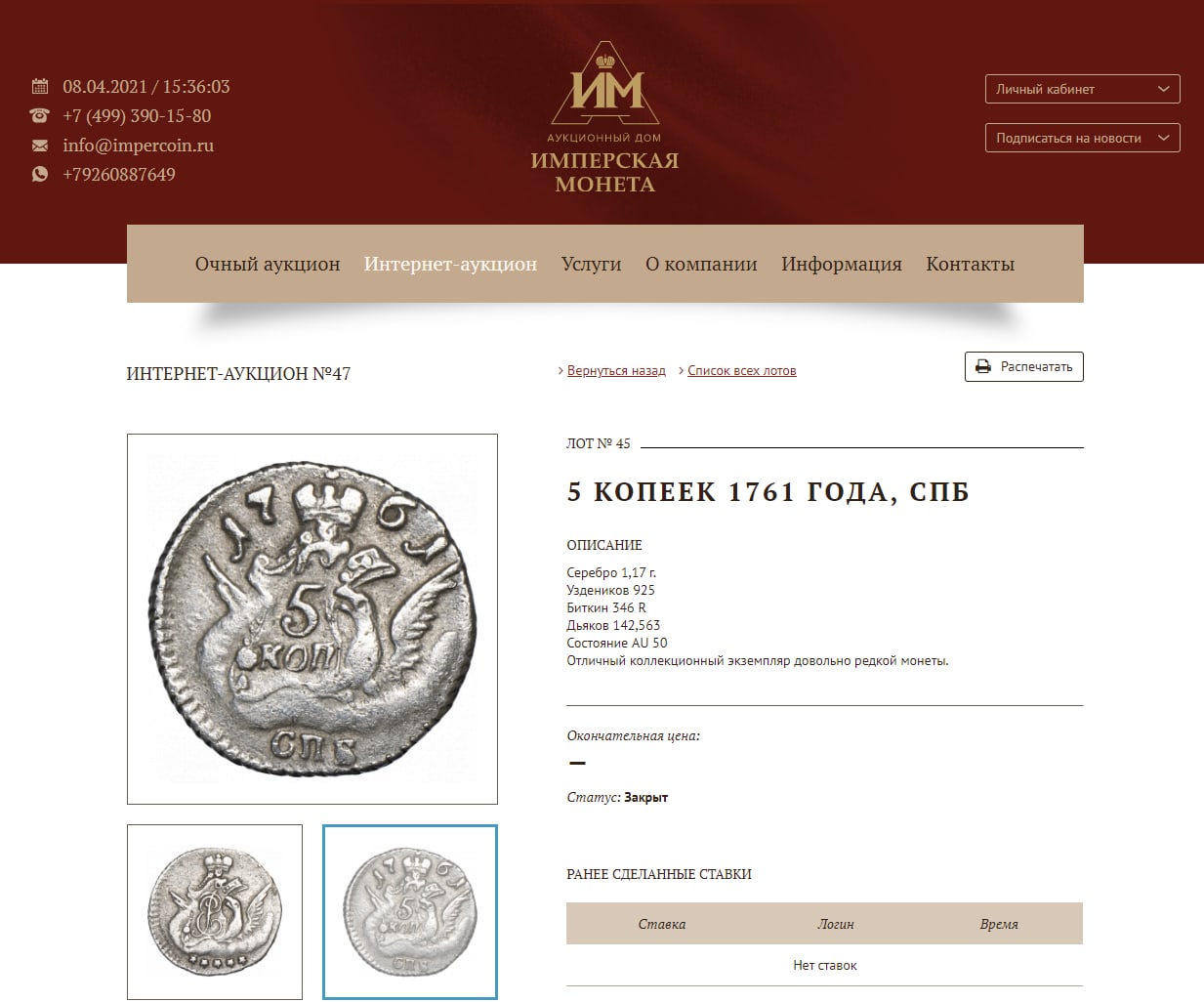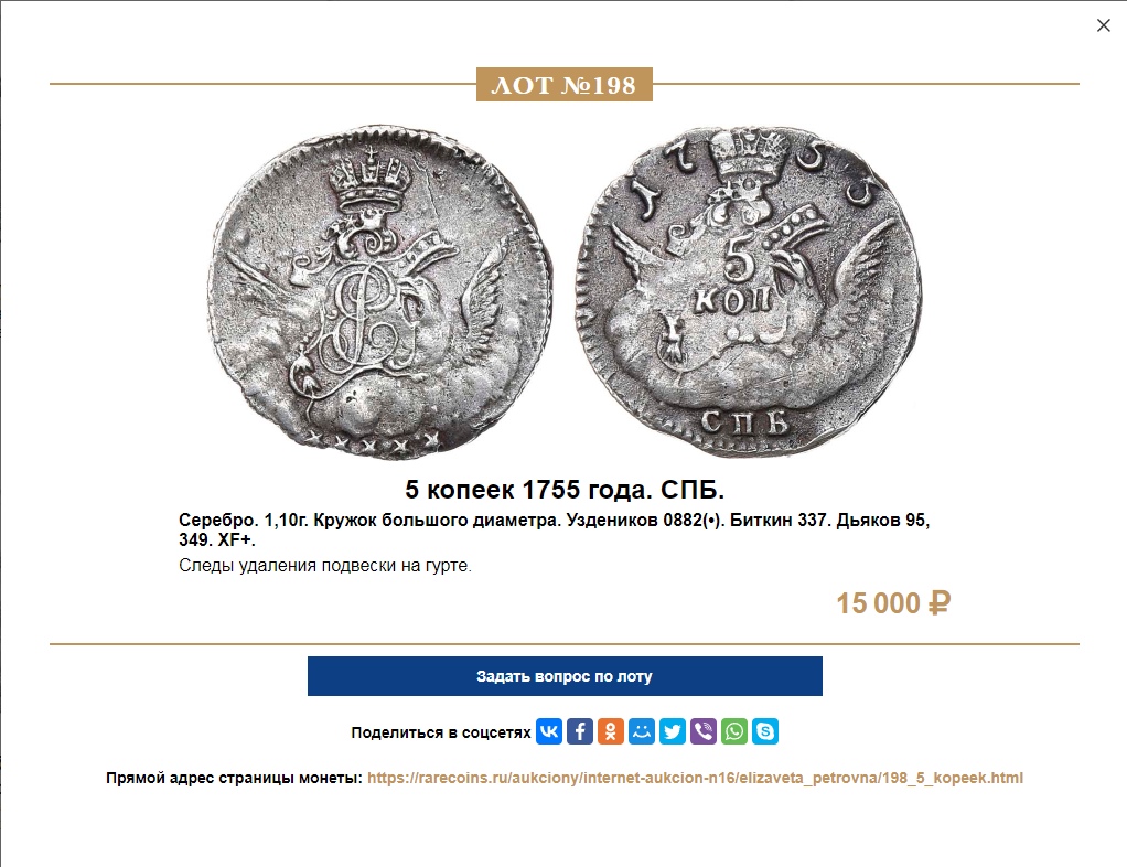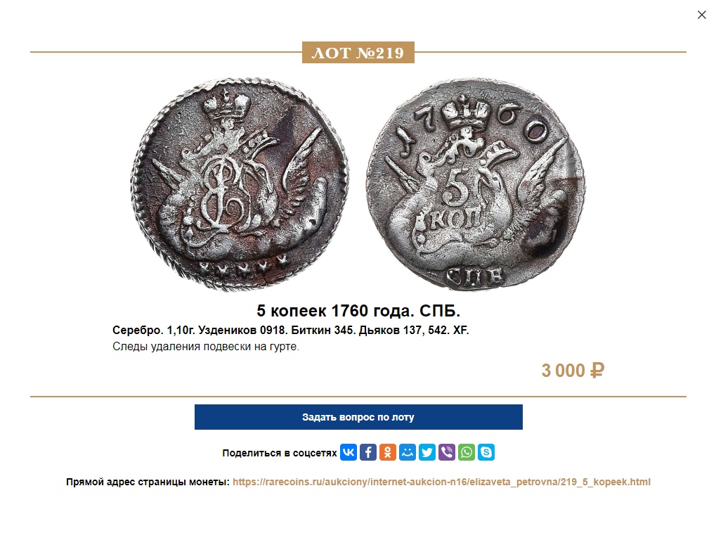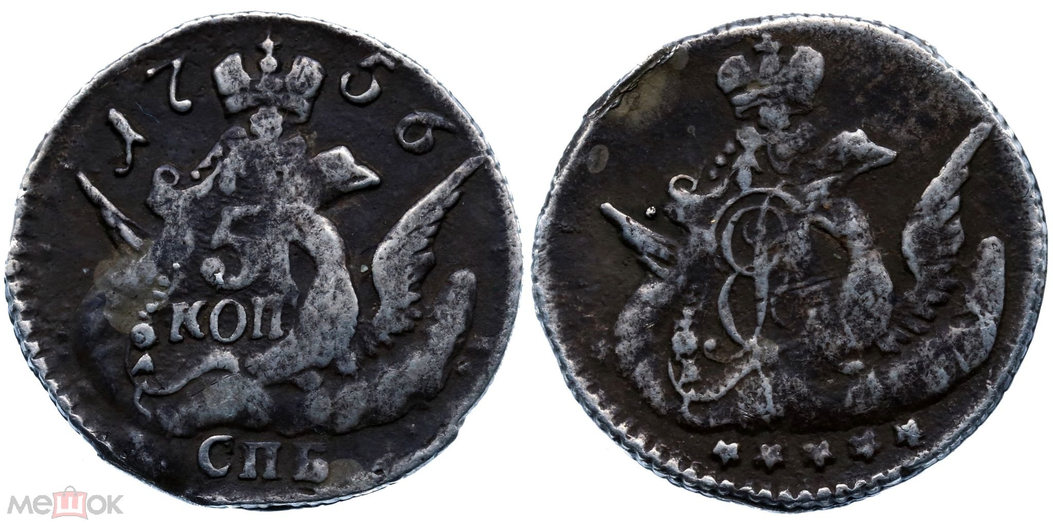 5 копеек 1760 года СПБ — грубая подделка для аукциона