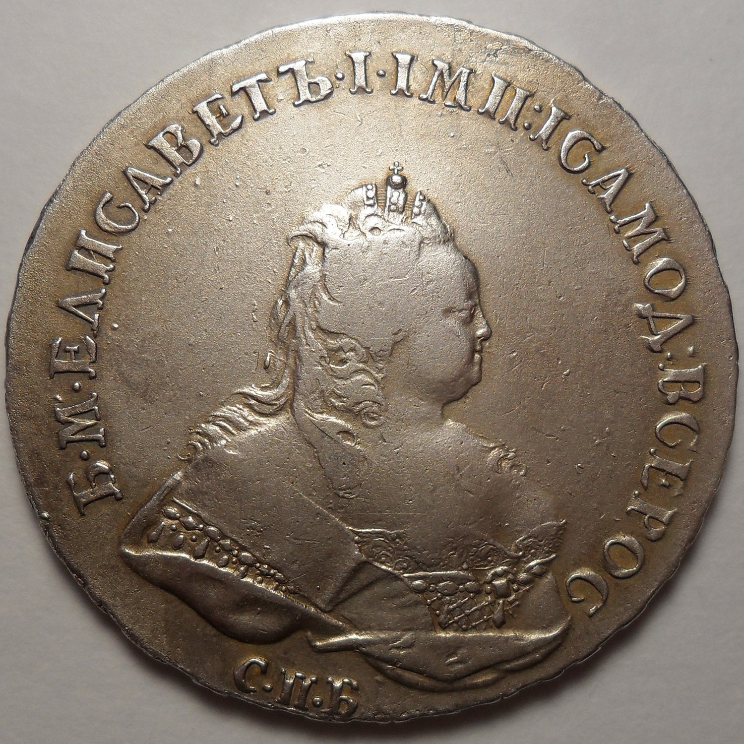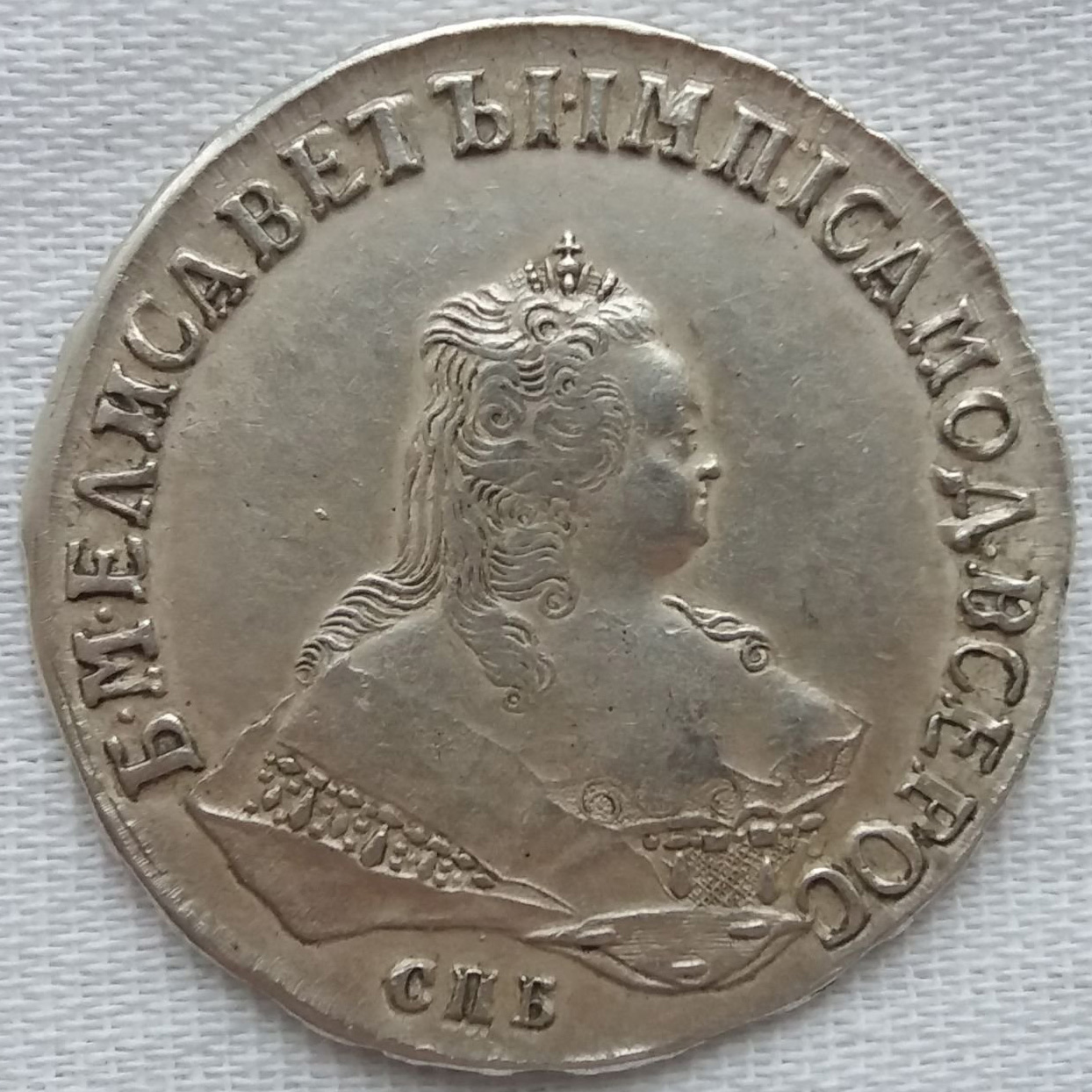 Рубль 1743 года СПБ — поддельная монета Елизаветы Петровны