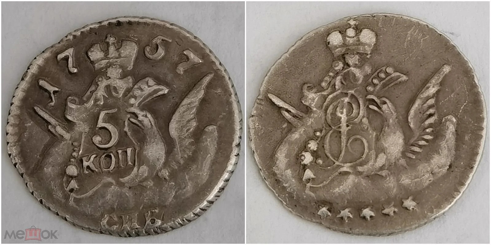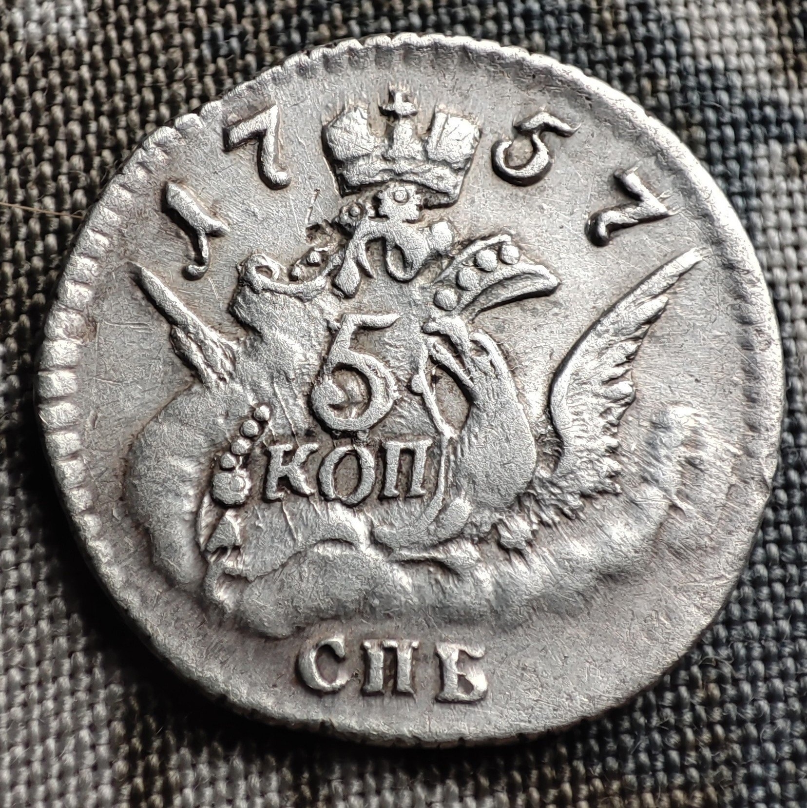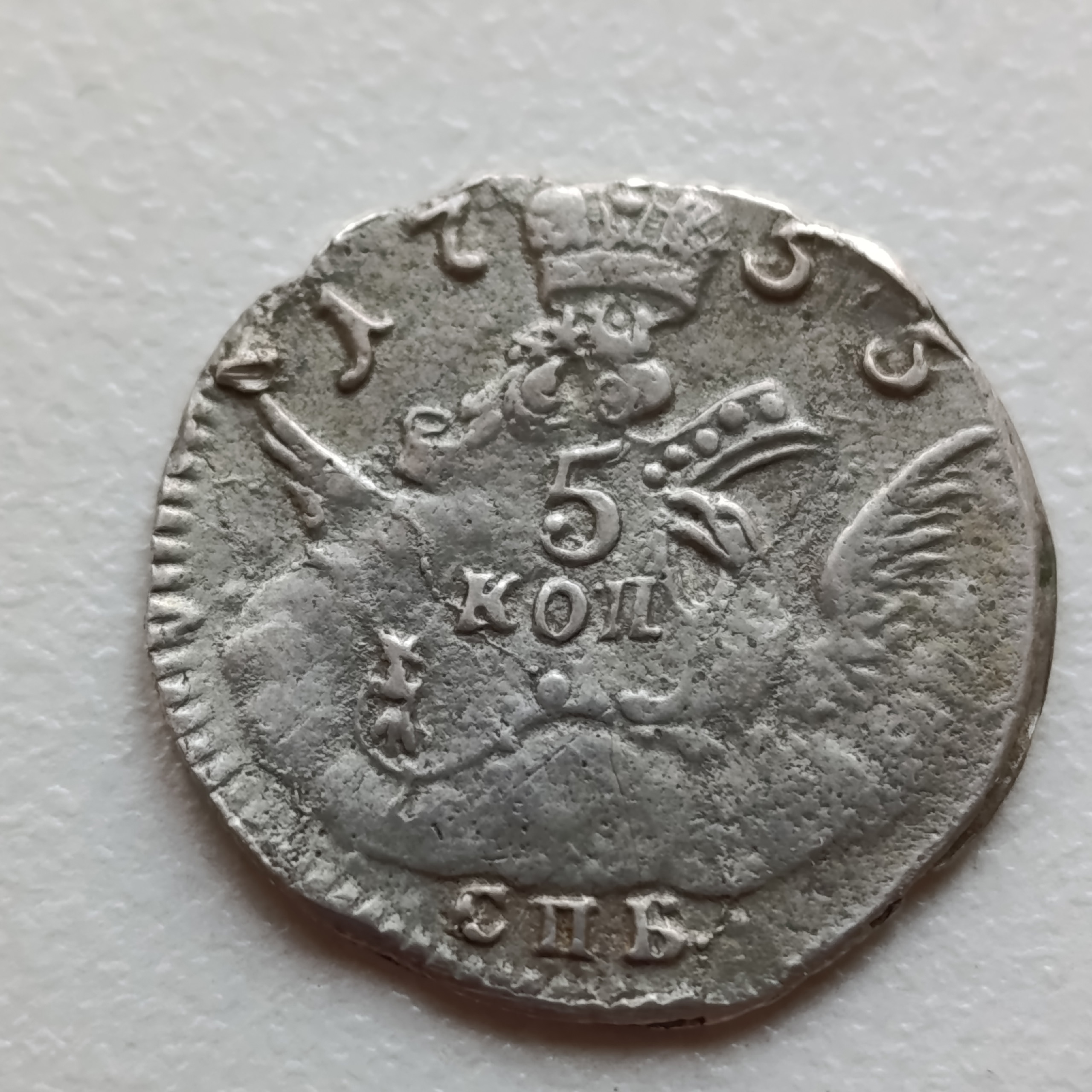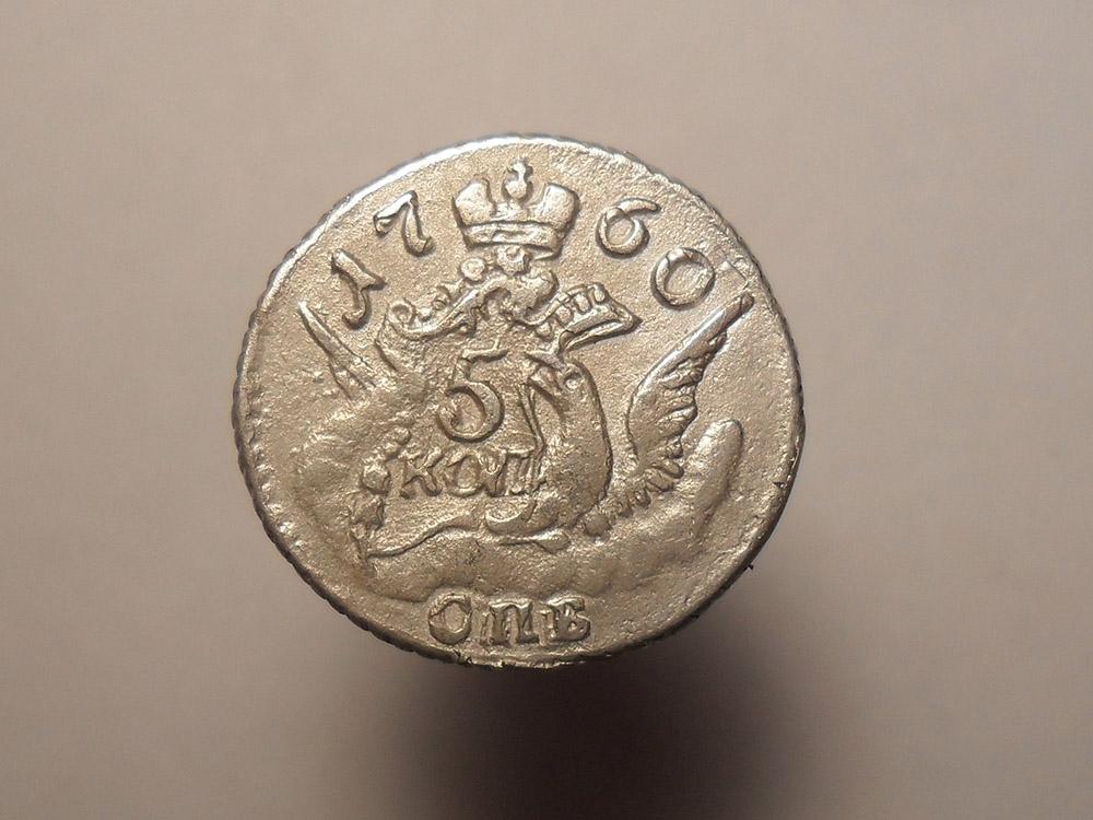 5 копеек 1760 года СПБ — поддельная монета Елизаветы Петровны