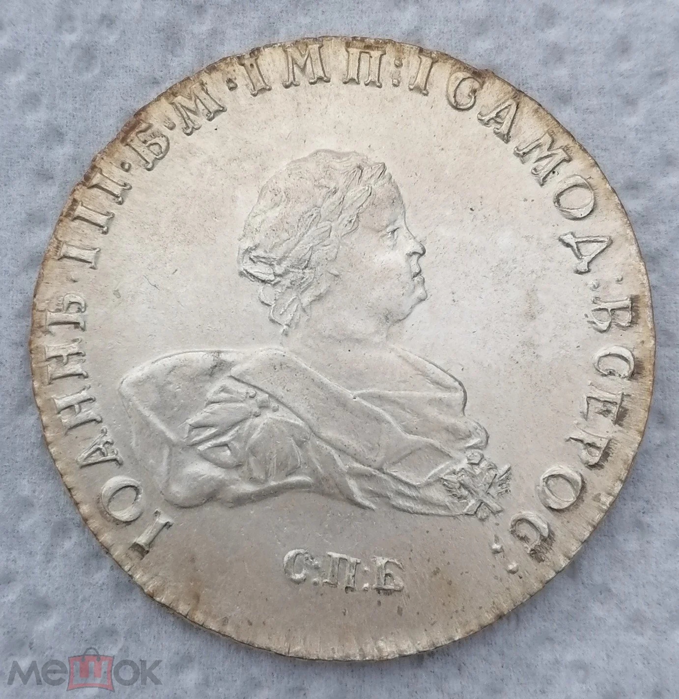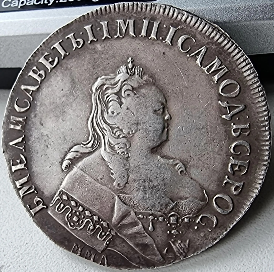 Монета представляет собой копию серебряного рубля 1741 года, отчеканенного при императрице Елизавете Петровне на Санкт-Петербургском монетном дворе (обозначение СПБ). Оригинальные рубли этого года являются редкими и ценными коллекционными экземплярами. Представленный в посте экземпляр изначально обозначен автором как копия, что подтверждается консенсусом в комментариях, где её называют ненастоящей и обсуждают условия покупки реплики.