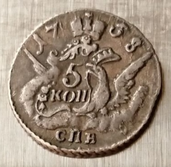 5 копеек 1761 года — поддельная монета Елизаветы Петровны