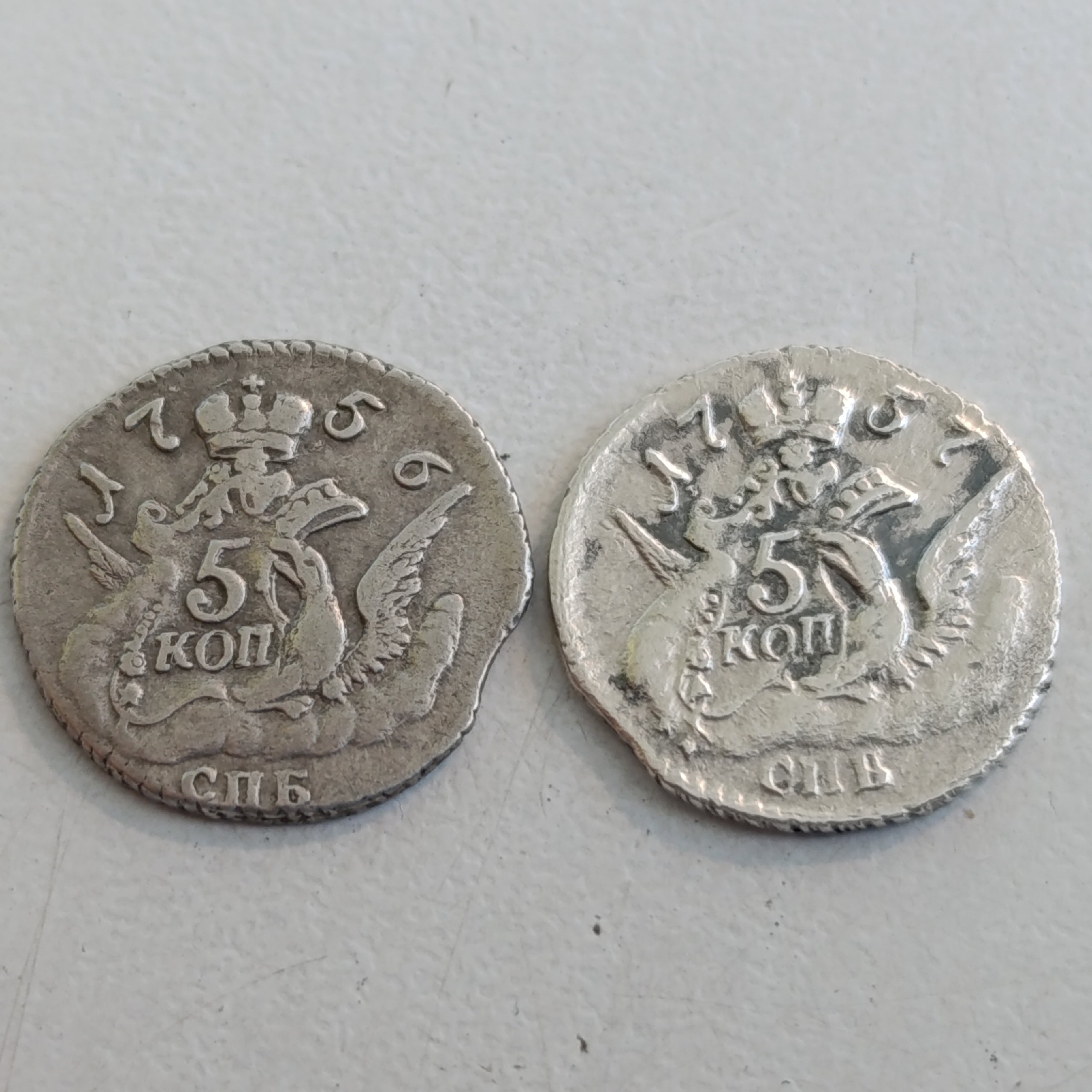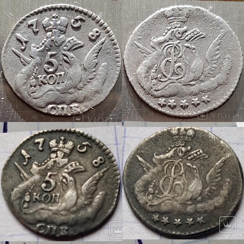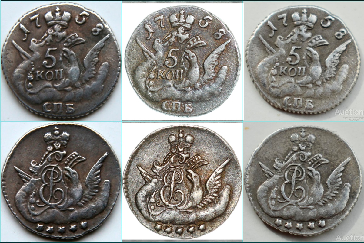 5 копеек 1756-1758 гг. СПБ — коллекция поддельных монет
