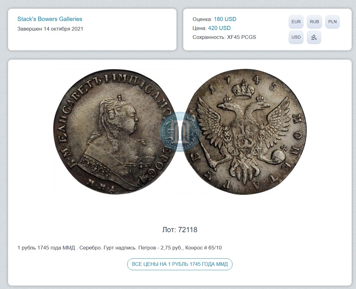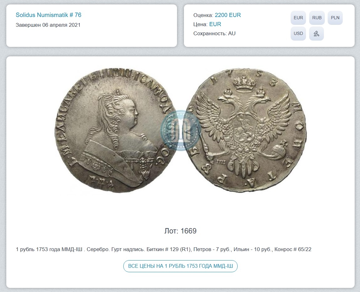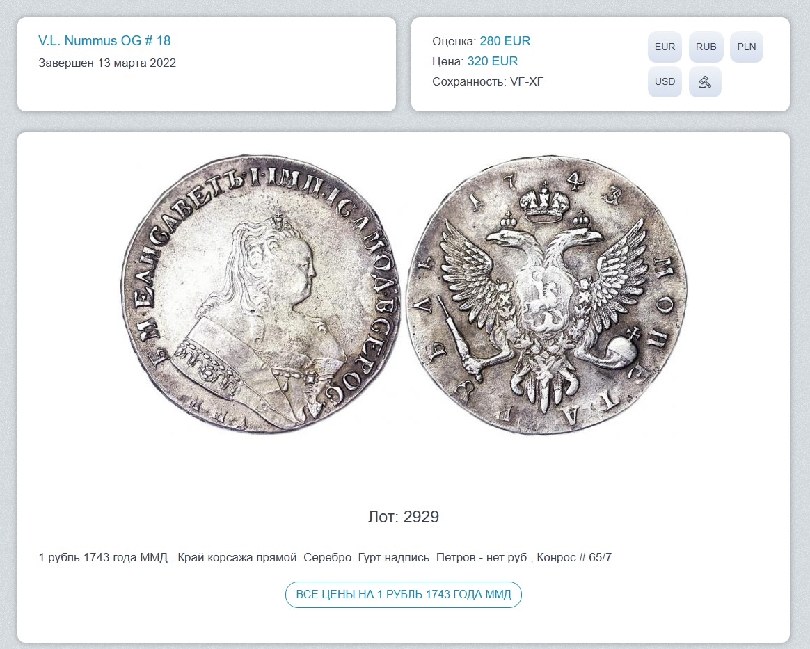Рубль 1743 года Елизаветы Петровны — подделка или копия
