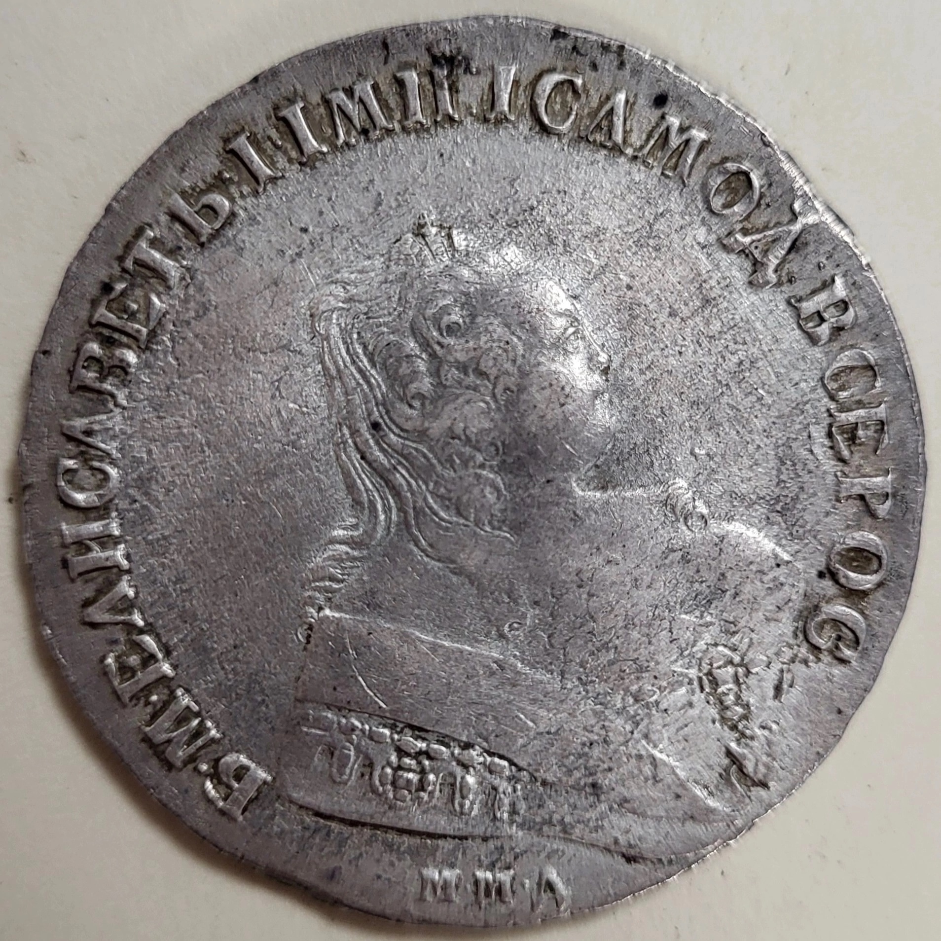 Рубль 1743 года Елизаветы Петровны — поддельная монета