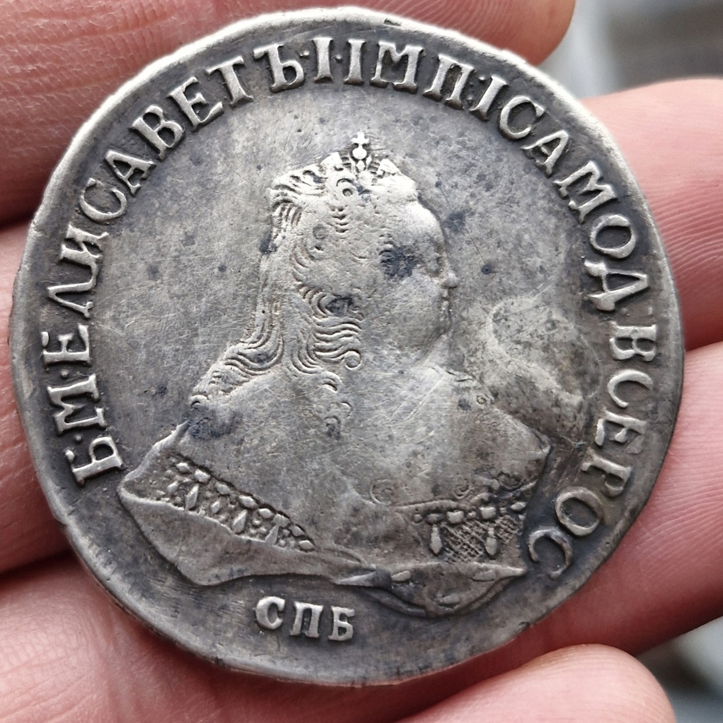 Рубль 1743 года СПБ — подлинная монета Елизаветы Петровны