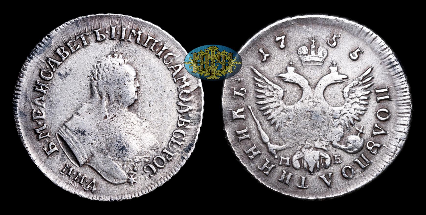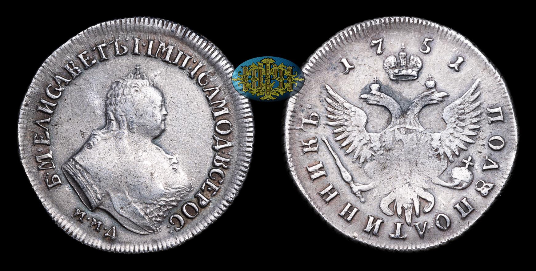 Полуполтинник 1751 и гривенник 1746 Елизаветы Петровны — подлинные монеты