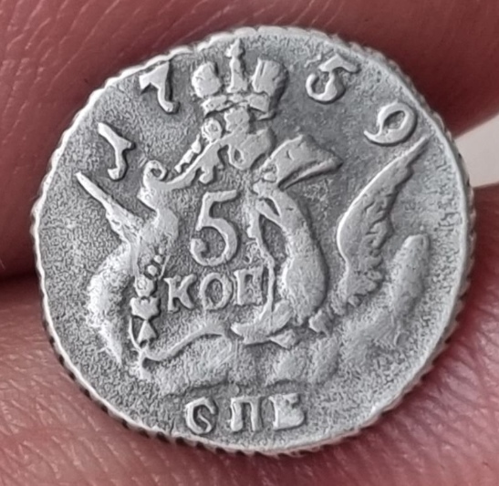 5 копеек 1759 года СПБ — поддельная монета Елизаветы Петровны