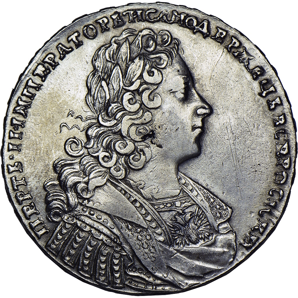Рубль 1728 года с ошибкой «ПЕРТЬ» — опасная подделка